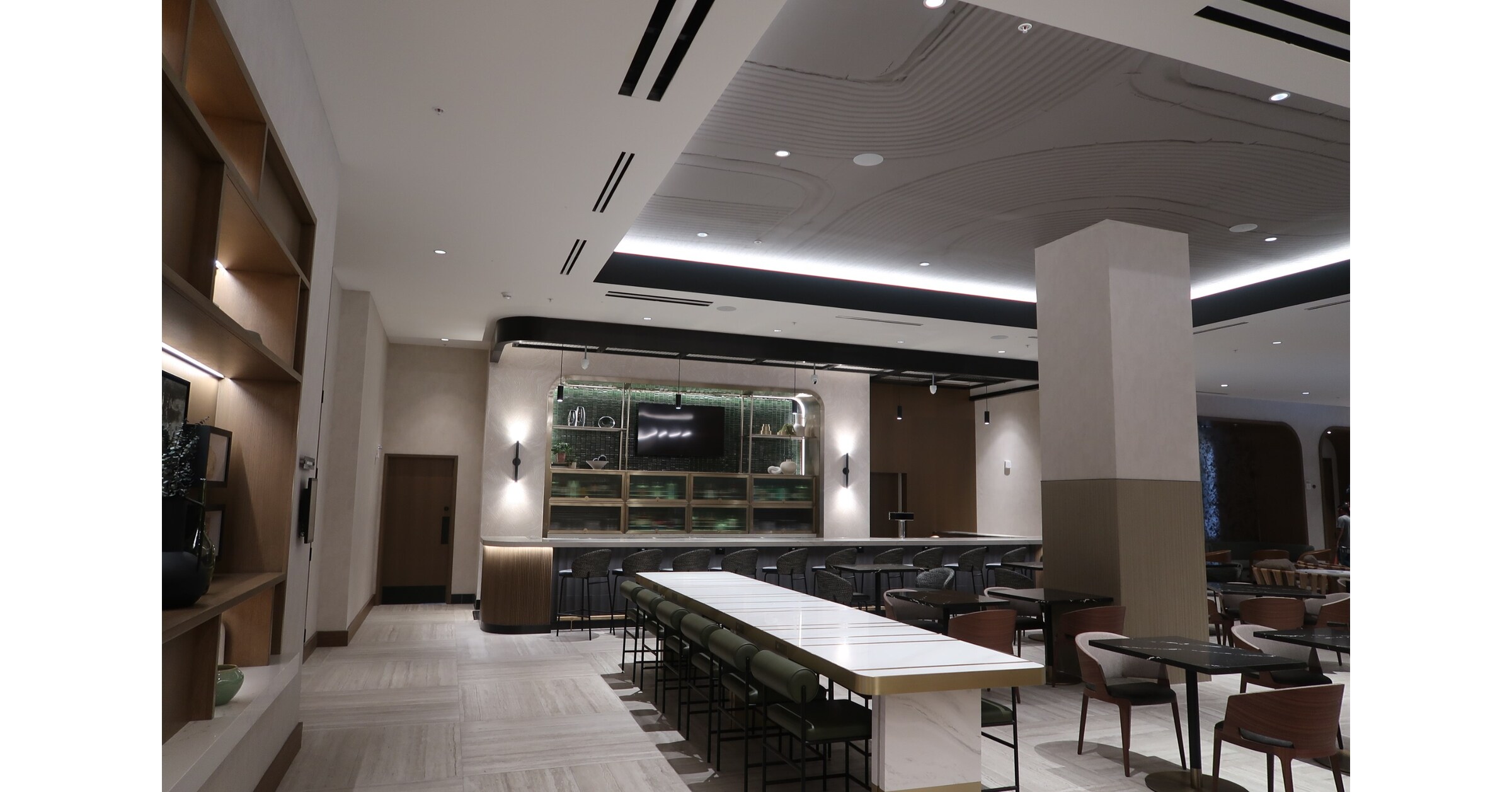 Designed by award-winning firm Premier Design + Build Group, Orexi features clean lines, soft earth tones and natural textures. A lush canopy of greenery and softly lit architectural elements add depth and intimacy, while communal high-tops and plush seating foster a sense of gathering and connection.