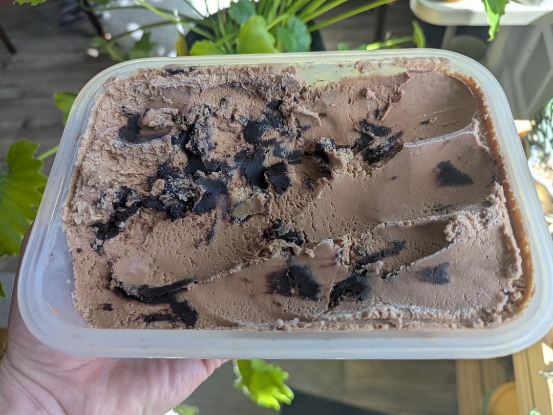 - In layers, add churned ice cream and ribbons of fudge to the final container. Place in freezer until fully hardened.