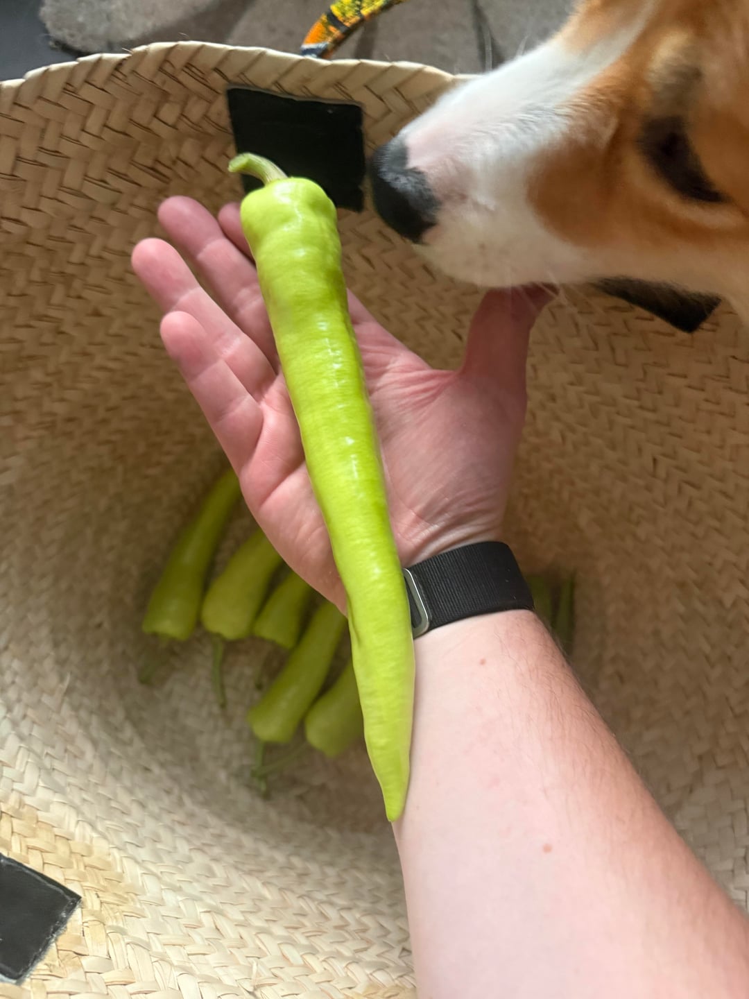 Also pickled banana peppers in a bread and butter brine I made with the hot peppers!