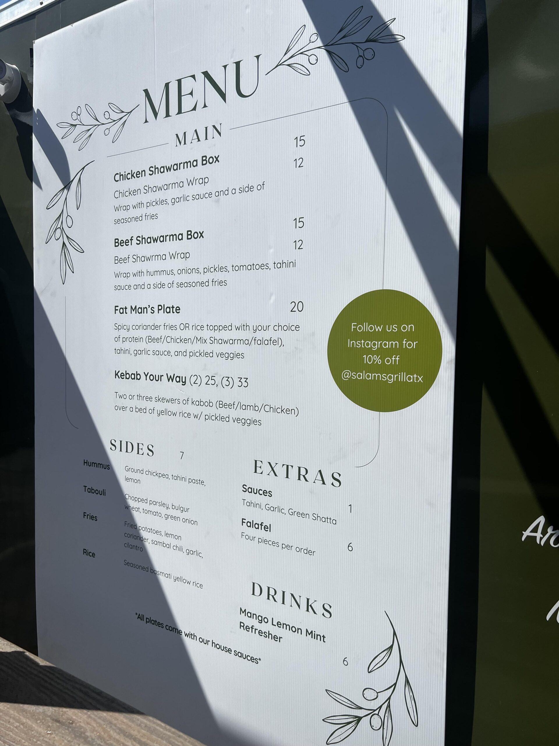I had them today too! I frequently go to peace bakery so I was ecstatic when I found out they were opening a food truck. We got their beef and chicken boxes which came with the coriander fries (which are very similar to peace bakeries coriander potatoes for all the lovers). Hummus was delicious and the mint drink was refreshing! I follow them on instagram and they have a 10% off discount rn if you show them that you follow at time of order.