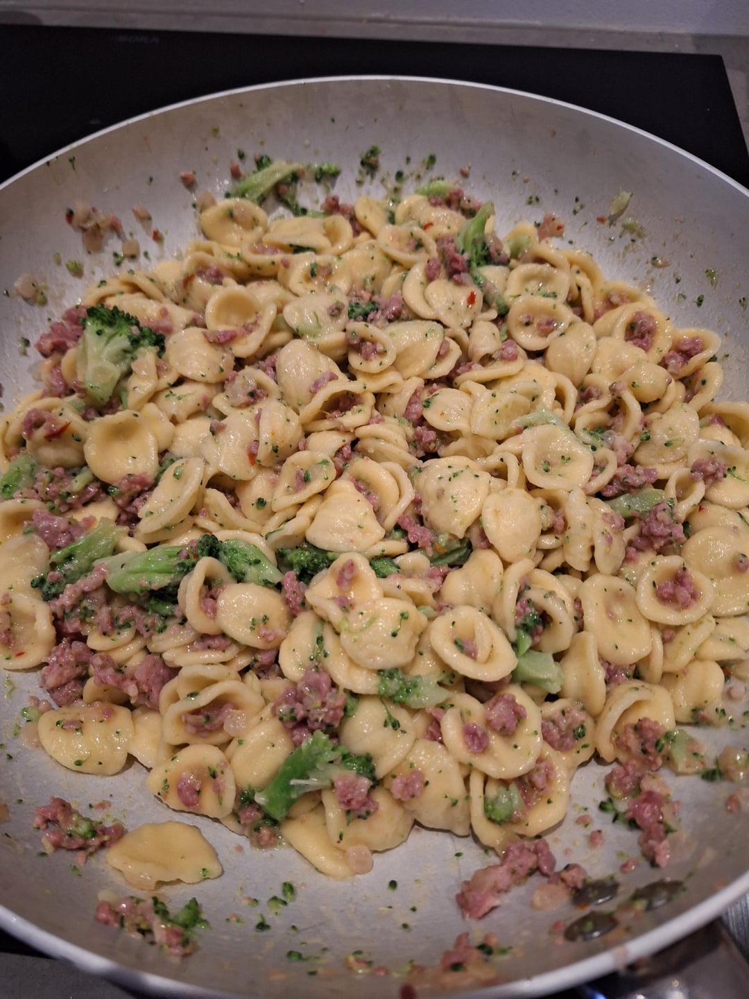 Cooked the sausage with some onions and deglazed it with a splash of white wine.