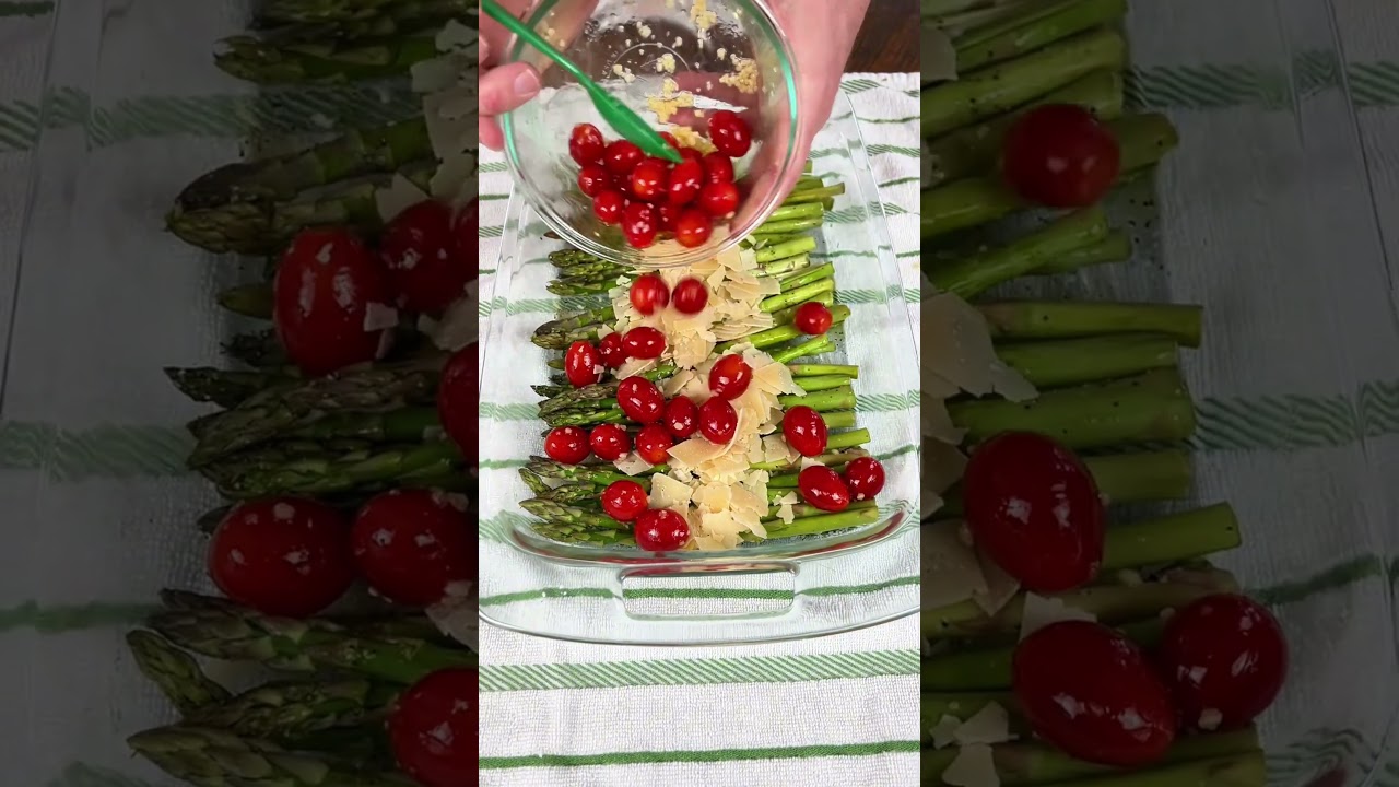 Now, I know a lot of y’all aren’t running to the table for your greens, but trust me, this one’s worth it. You’re going to take some fresh asparagus and drizzle some oil on it, and then sprinkle it with some salt and pepper, and then give it a toss so every stalks coated. In a small bowl, you’re going to mix some cherry tomatoes with olive oil and minced garlic. And you’re going to set that aside. Back to the asparagus. Sprinkle some shaved parmesan right down the center and spoon that tomato mixture over the top. And then drizzle with some balsamic glaze. and add some fresh chopped basil. You’re going to bake it at 350° for about 15 minutes until the asparagus is tender and the cheese is softened. Healthy never tasted so good, y’all. I’m telling you right now, if you don’t eat it all, your friends and family will.