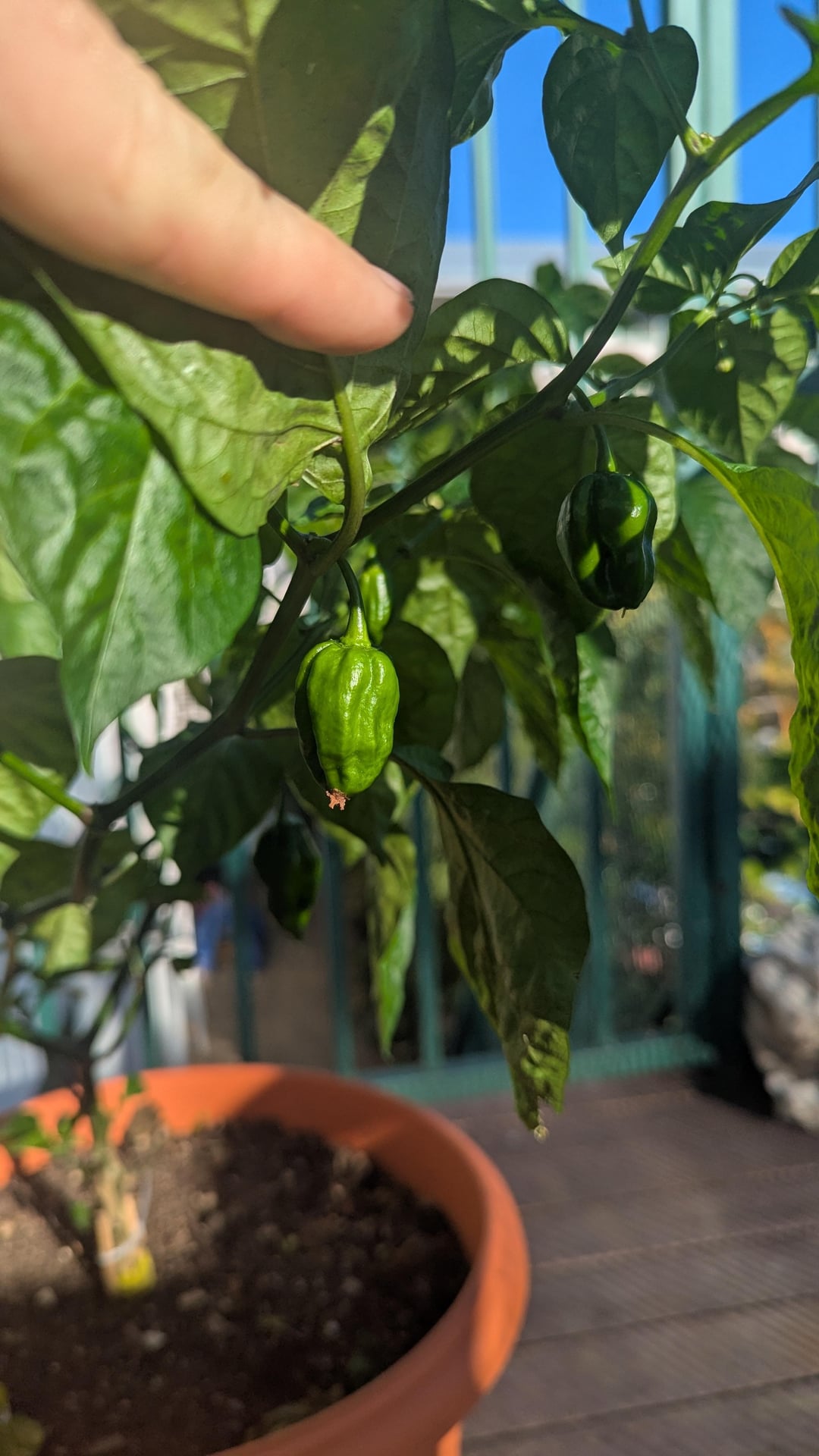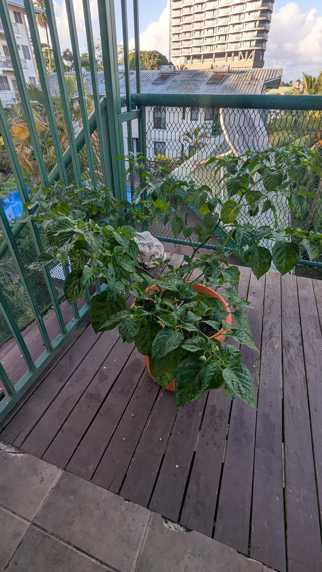 I live in Fiji so the old bongo chilli is plentiful. However I started to grow a couple of plants in pots on the balcony. One didn't do so well from the off, still gives fruit but is stunted, however my other plant I just wanted some advice or comments on.