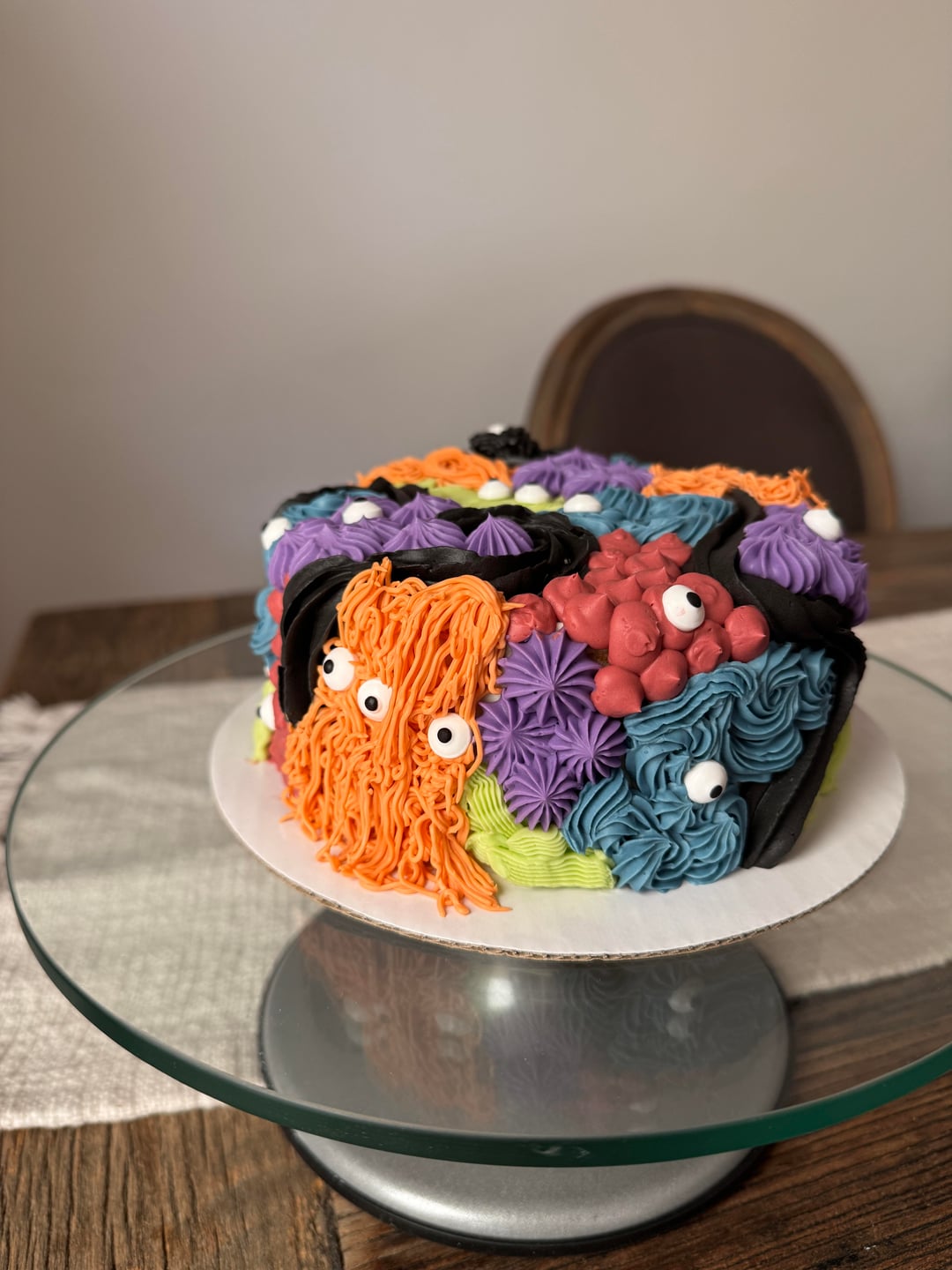 Every year around September I get the song monster mash stuck in my head on repeat for the next two months or so. I made a monster cake in ode to that. I love spooky season!! π»π§‘