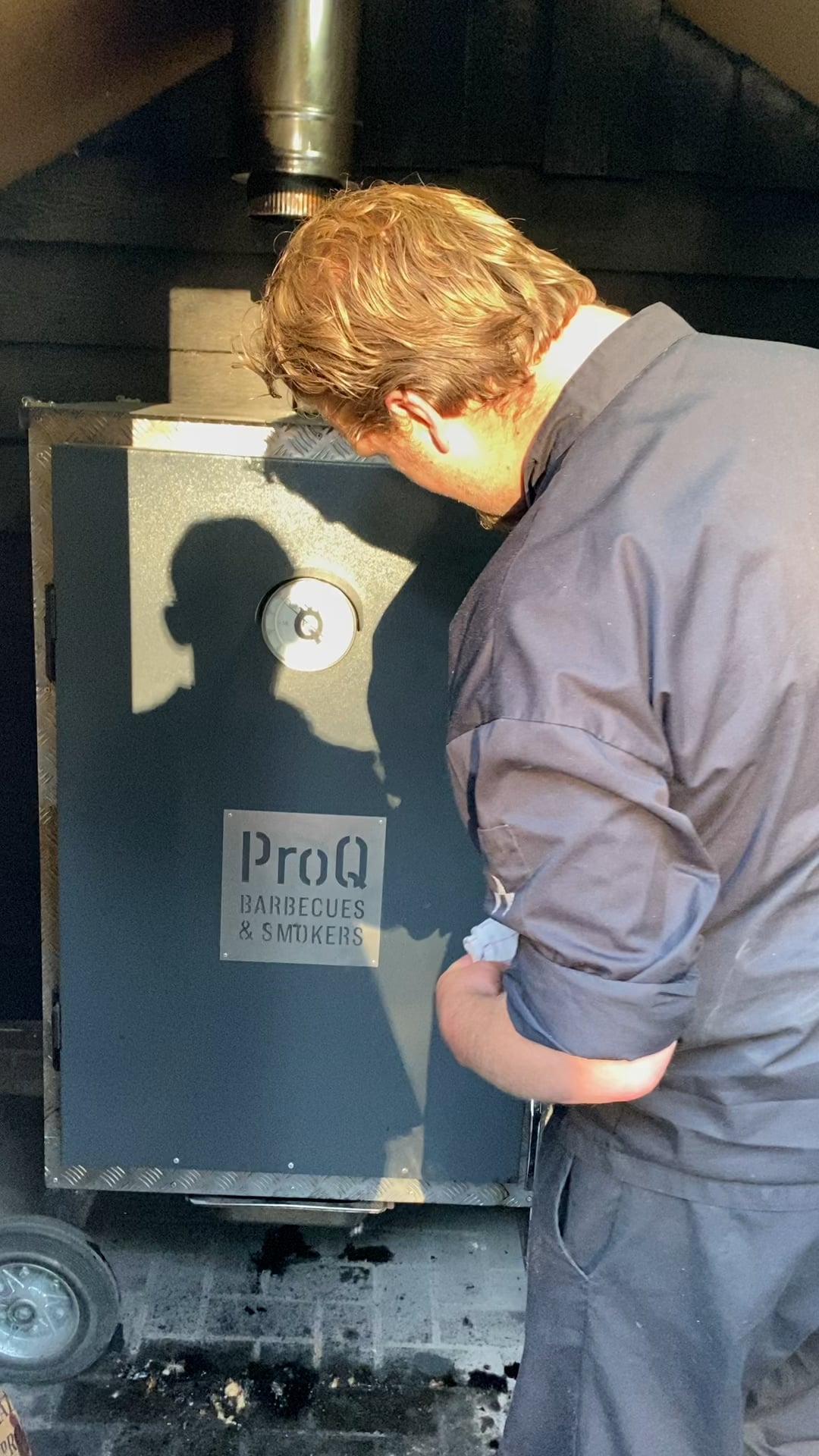 Together with former Student Pitmaster Robert, wrapping two big chucks (8 kilograms each) of beef for the final core temperature of 96 Celsius,, they were 24 hours in the smoker at 107 Celsius.,