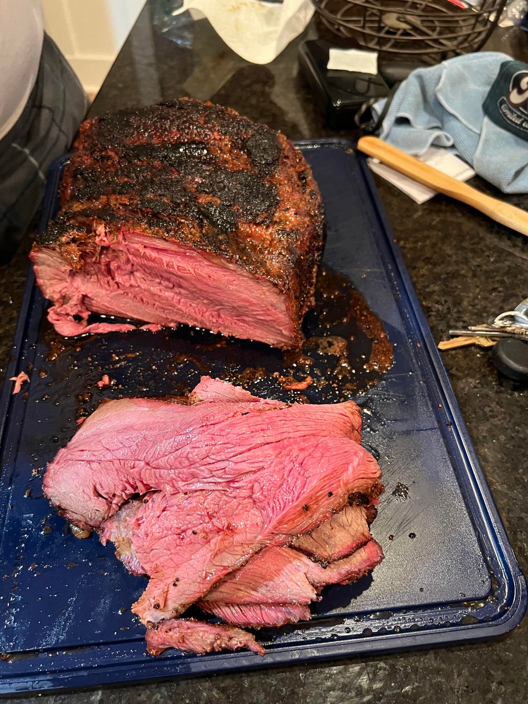 Nice job! I did my first picanha roast a couple weeks ago. My local market had them on sale so I thought I’d give it a shot. I pretty much followed the same process you did. I even used Kinder’s Prime Rib rub along with an extra dose of cracked black pepper. Seared it at the end with my gas grill. I let the fat cap drip into the flames where it flared up and blackened both sides. Did not take long to sear this way lol. Medium rare on the inside.