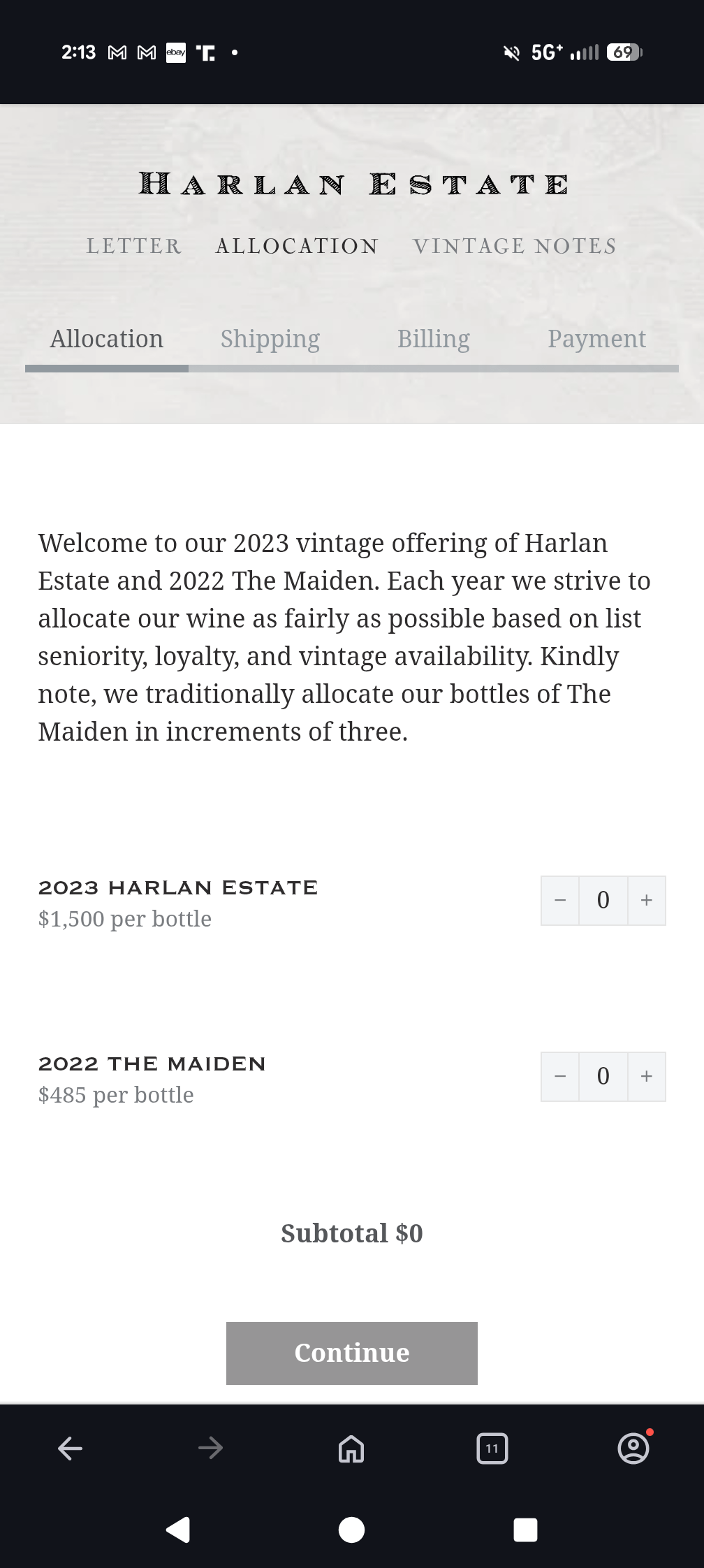 $485 per bottle with a 3-bottle minimum seems a little excessive…especially for their 2nd wine. Honestly, I was excited to get The Maiden allocation and was willing to pay $250/$300-per bottle. But I wasn’t ready for $485