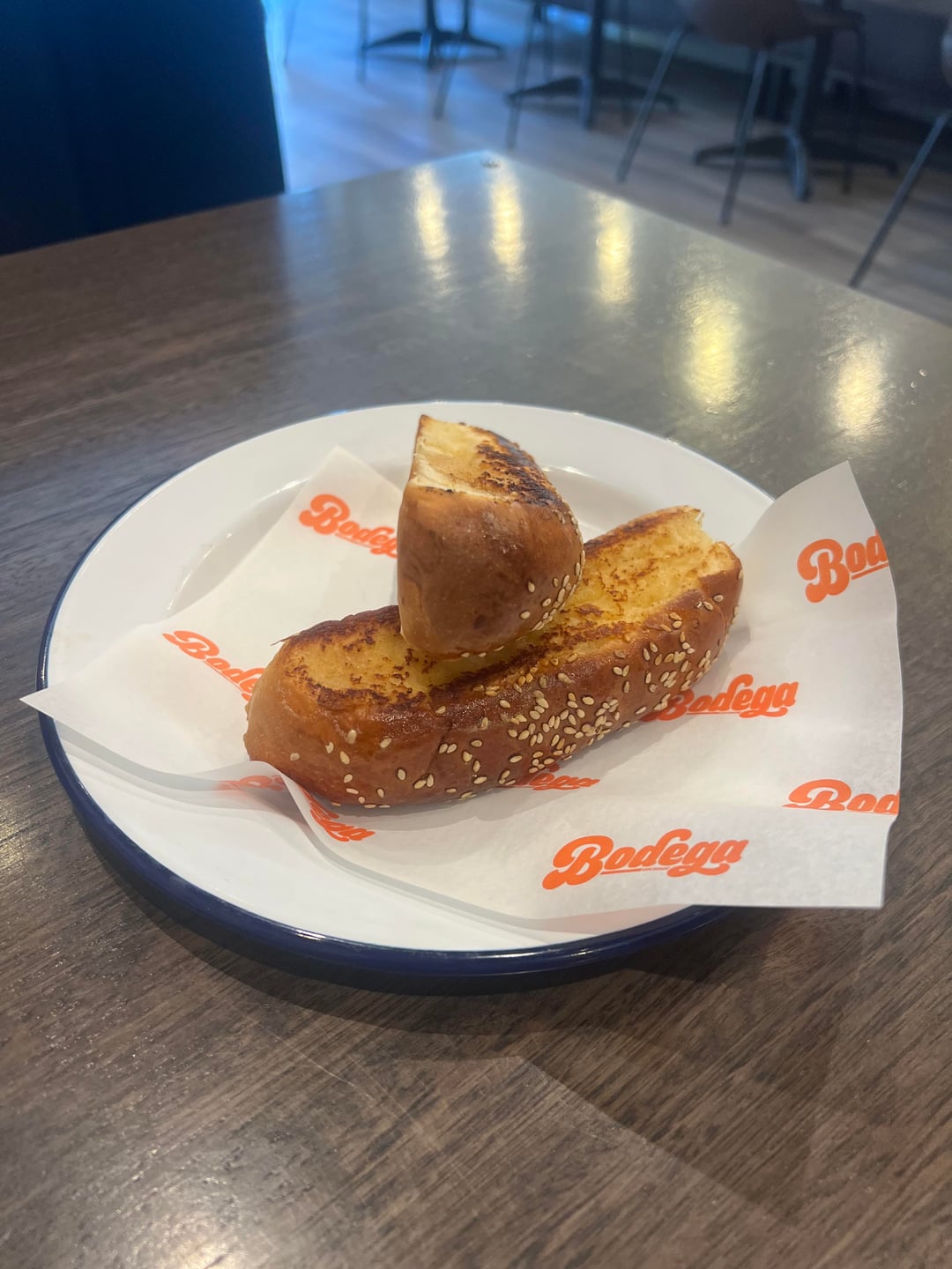 texas toast – toasted milk bread, with a savoury garlicy, parmesan seasoning (i ate 1)