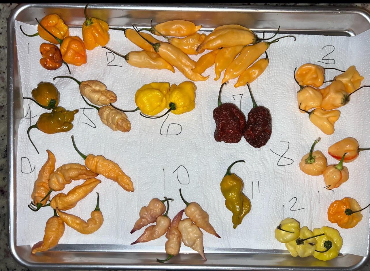 2 might be aji mango, 8 peppa peach stripy, 12 KSLS 13 might be KS Starrkist peach by KeyConsideration8842 1 Comment No_Boysenberry2167 3 weeks ago Absolutely no idea because I’ve never seen peppers this color before! First purple now peach? I need to expand my tastes next Spring.