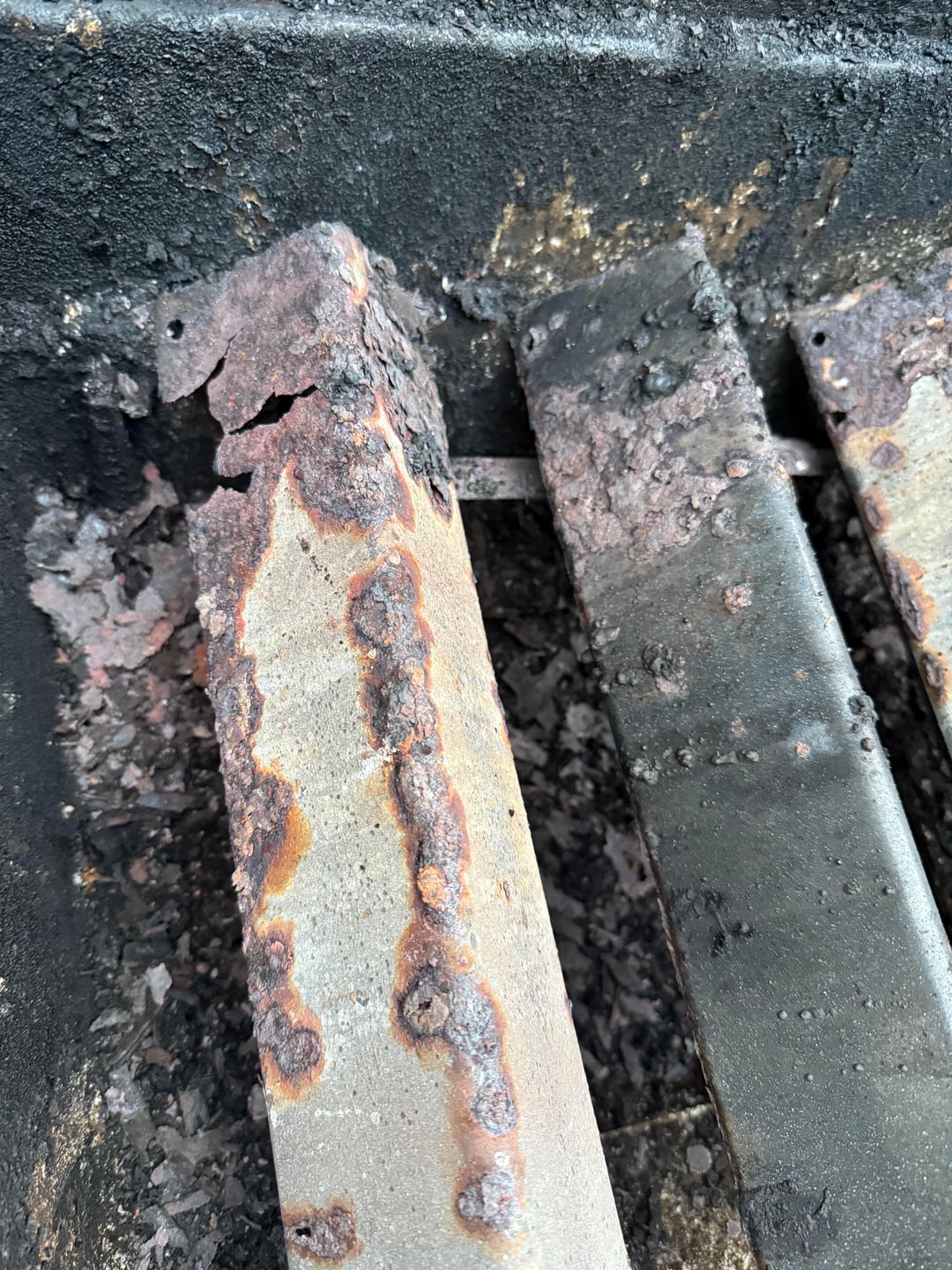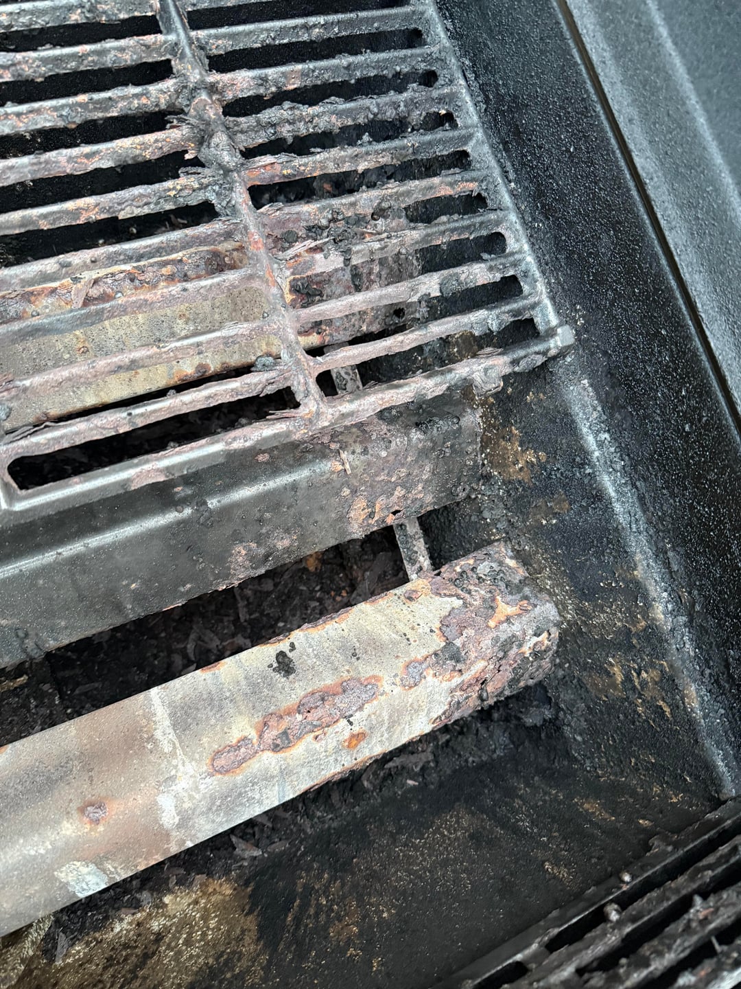 Is this grill salvageable? It’s a Weber Spirit. My partner and I apparently have different ideas about grill maintenance. First pic is after cleaning with a nylon bristle brush and dawn. Second two pics are what it looked like before. When I cleaned it, it seems like large portions of the ceramic coating came off. I can see shiny silver inside the body. The grates are rusted and the flavorizers are rusted and crumbling. I know I can buy those replacement parts, but what about the inside of the body? Thanks!