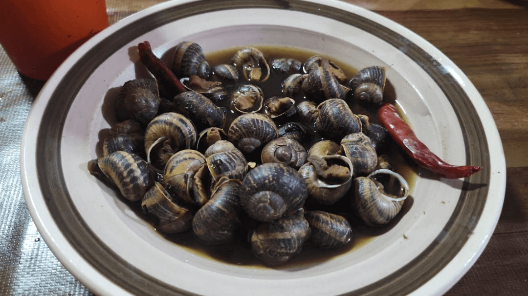 Snail soup, with garlic, chili and cilantro,accompanied with pico de gallo and tortillas.They are also delicious when roastedI know it's not a common dish but it's delicious, it's my favorite foodby sarjett Dining and Cooking