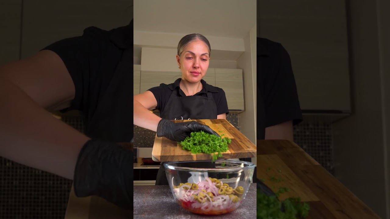 4. Add chopped onion, herbs, garlic, cheese, salt, and oil and mix.
