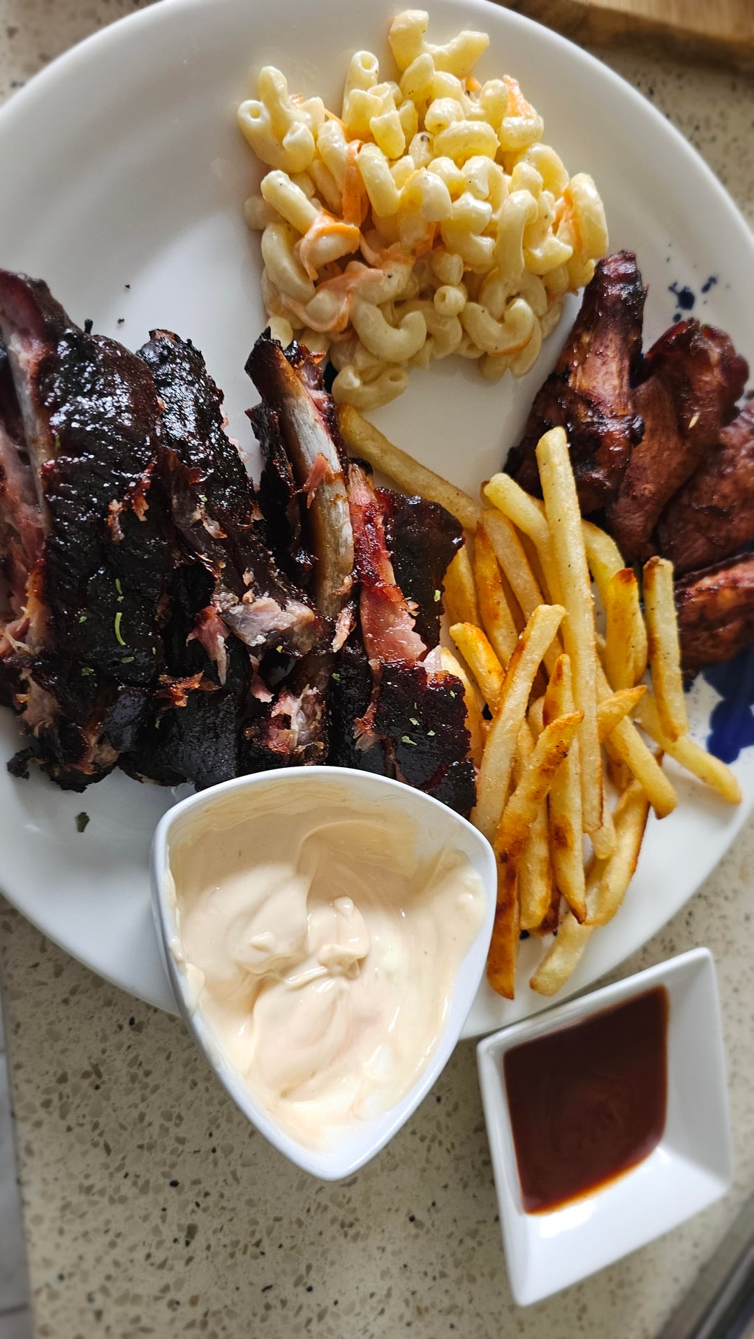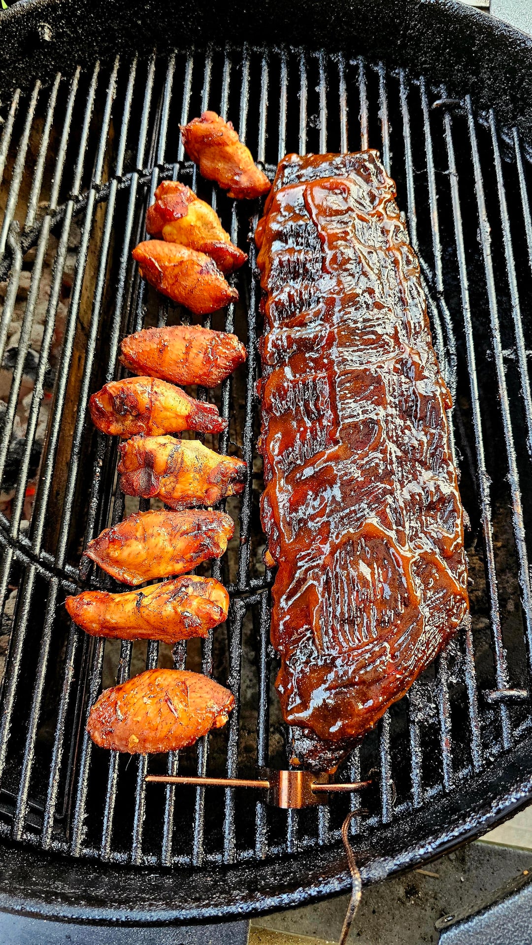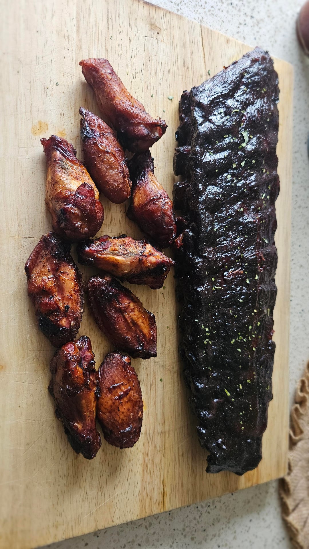 Baby back rib rack smoked with some dry rub wings I threw on last 2 hrs of the cook. by FarBreakfast6956 Dining and Cooking