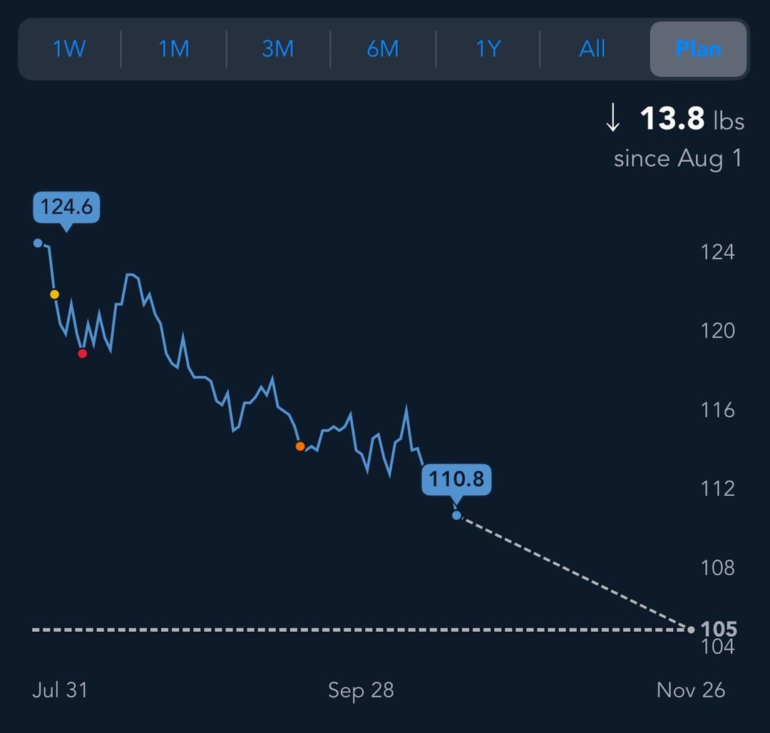 1. Congrats!! This is my goal weight too. :0 are you short like me? 😅
