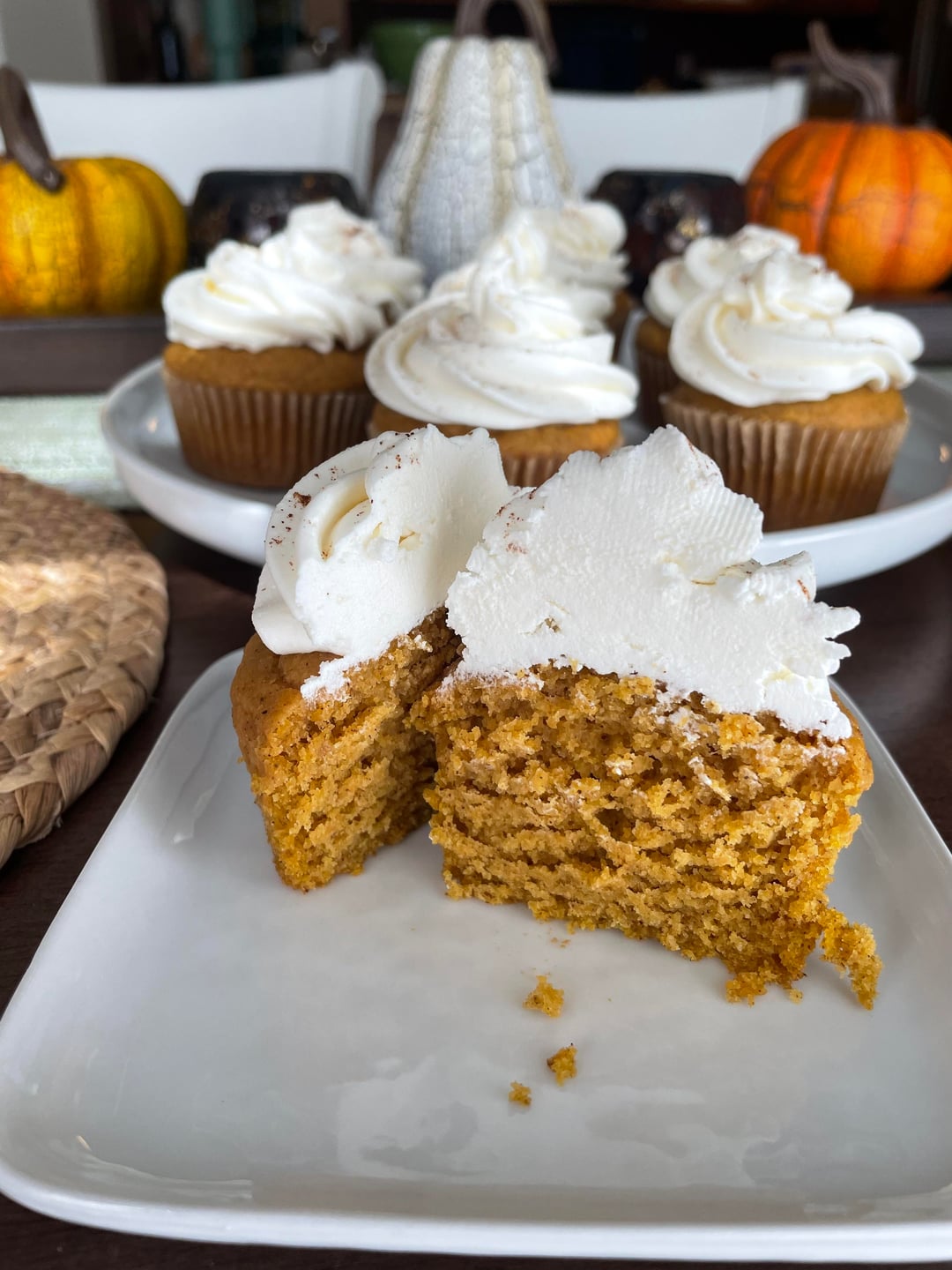 Combine flour, baking powder, baking soda, salt, and spices in a separate bowl. Add to wet ingredients in two or three additions. Stir just to combine, being careful not to over mix. Scoop into a lined cupcake tin using a cupcake scoop or fill ⅔ full. Makes 24 muffins/cupcakes. Bake at 350°F for 22 minutes or until internal temperature is 205°F