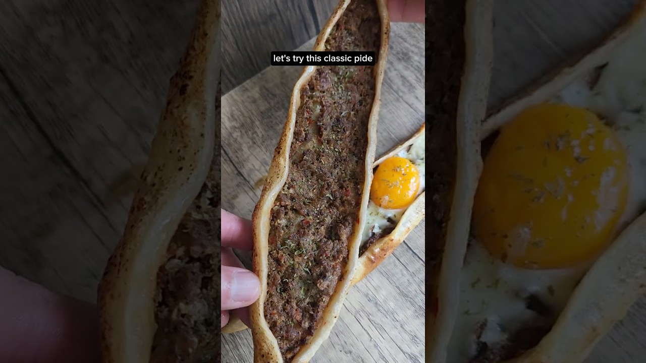 Let’s make this Turkish pday. Roll out my allpurpose Middle Eastern dough to an oblong shape. It should almost be translucent. And top it off with my middle eastern m lamb. Brush gently to adhere leaving a small border around the edges, not too thick and not too thin. Fold the edges over the lamb and pinch to seal the two ends to resemble a boat and stretch the dough slightly and transfer onto a cutting board lined with parchment paper. Brush the Asia with some egg wash. Preheat your oven to the highest temperature setting and set your pizza stone or baking steel on the lowest rack. I’m just using an inverted baking tray and slide in the Pday. Bake until the bottom is slightly charred. It should look something like this. The lamb should be baked through and the top is crispy brown. I’m going to make one with cheese and egg toppings. I’m just using some shredded mozzarella. Pick until the cheese has melted and slide in an egg yolk and continue picking until the yolk is set. Garnish with some parsley. Drizzle some extra virgin olive oil and squeeze some fresh lime juice over the top and brush your dough with some melted butter. And now it’s time to get the four article at fetto.sg. Let’s try this classic pday. This tastes so good. Not going to lie, but this tastes better than some other pizza. Turkish cuisine is so underrated. Now, let’s try this egg and cheese toppings. I’m still fighting the right word to describe how good this is. Hope you give this a try. Thank you for watching. Have fun in the kitchen.
