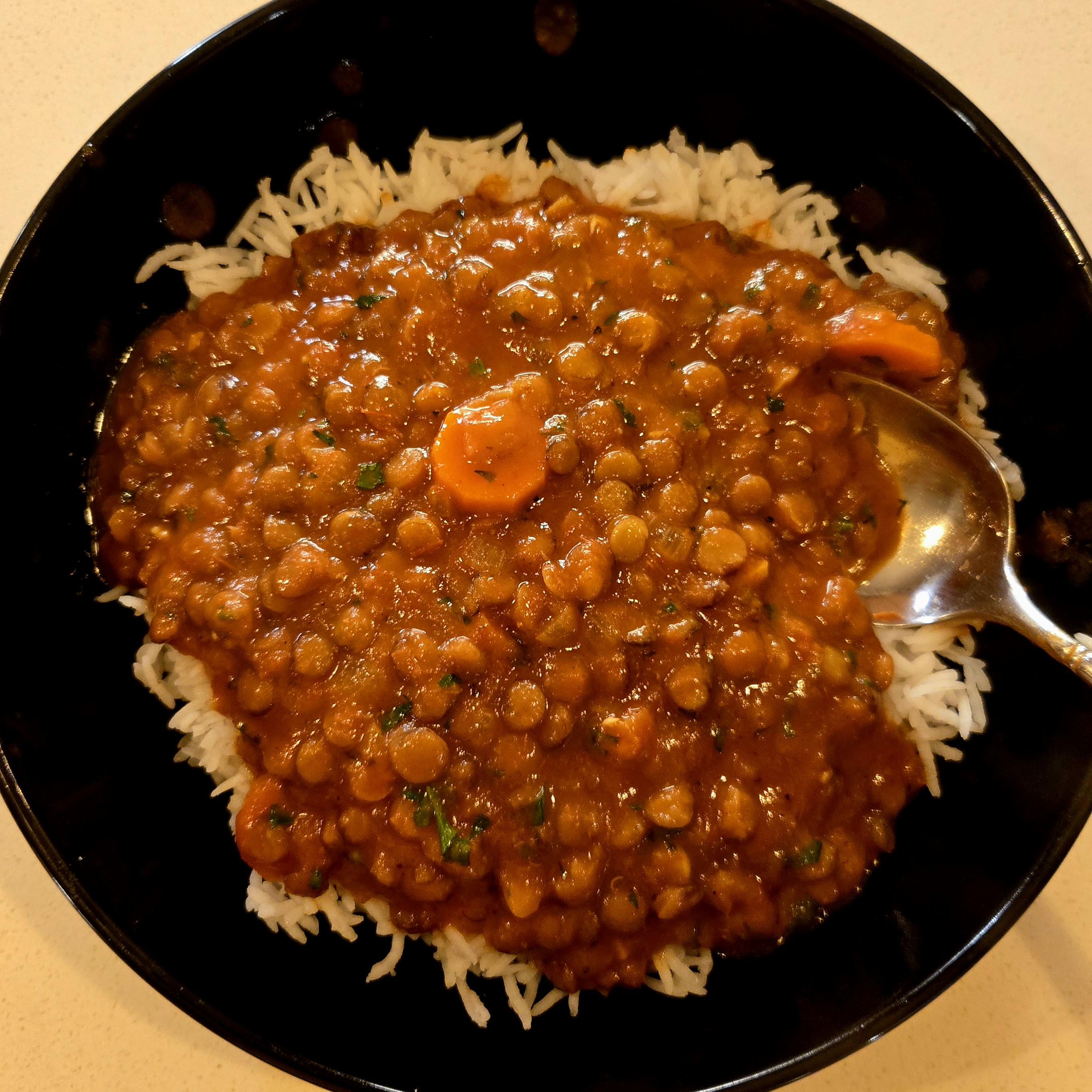 3. Bring to a boil, lower heat, and cover; simmer for 45 min or until lentils and carrots are soft.