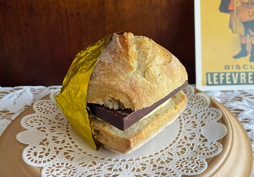 The simple, slightly sweet sandwich is a French favourite. “A very traditional gouter option is a slice of bread with butter on it and a few squares of chocolate,” he tells Broadsheet. “We had that all the time in the ’90s.”