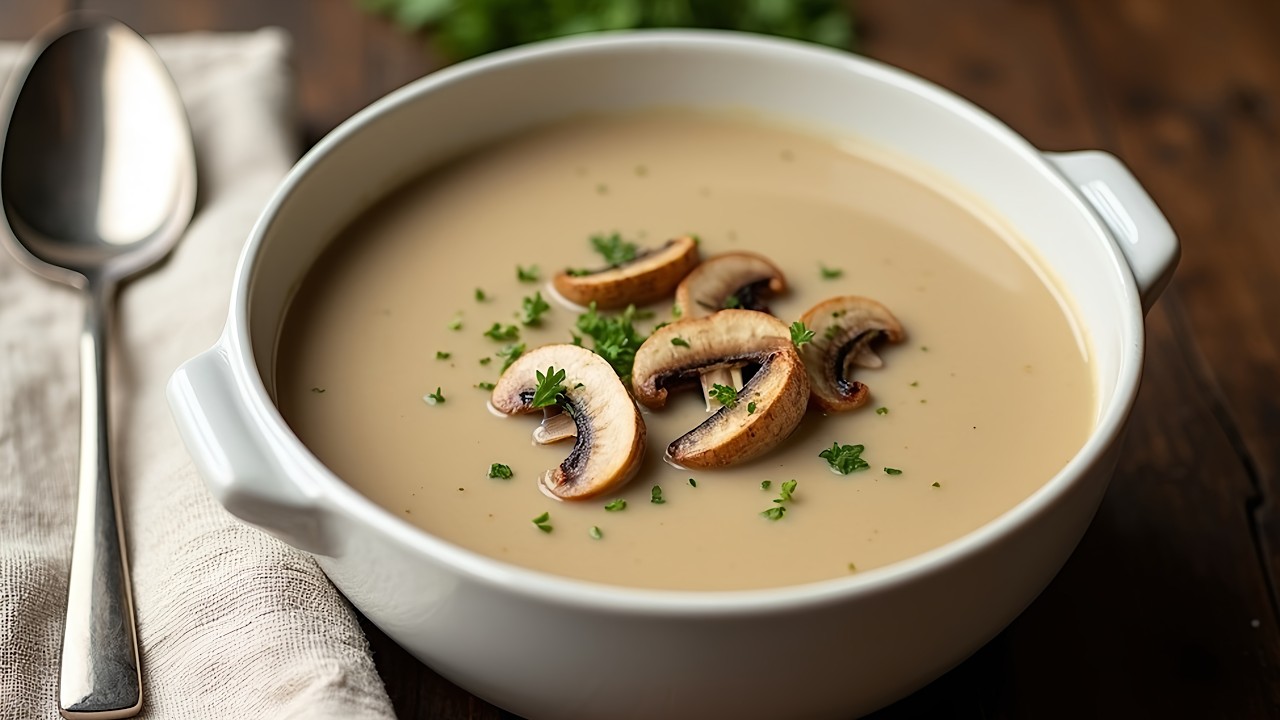 Hello friends! 😊 How are you today? I hope your enjoy my video and recipe 🥰! Slice 350g of mushrooms. This is one of my favourite soup recipes of all time 😍. It’s creamy, delicious and very simple to cook 😋! Your friends and family will love it 😊! Let’s cook 🥰. Add a little olive oil and 30g of butter. Fry the mushrooms for 5 minutes 😊. From which country are you watching my video? 🥰 Please write it in the comments, it’s so interesting to see where we are all from 😊! Finely chop 1 onion. Fry them together for a few minutes 😊. What are some of your favourite soup recipes? 🥰 Write them in the comments to give me ideas for my next video 😊! Finely chop 2-3 cloves of garlic. Leave to cook together and release all the flavours for 5 minutes 😋. If you’re enjoying my video, please subscribe 🔔 to my channel to help it grow 🥰! Slice some lovely fresh bread to make a garnish for the soup 😊. Add a little olive oil. Some dry herbs, salt and pepper 🥰. Mix very well. Grate 50g of cheese, I prefer parmesan, but you can use whichever cheese you like 😋. Place on a baking tray lined with parchment paper. Sprinkle the cheese on top and place in a 200 degree oven for 10 minutes, until the cheese has melted 😍. How could I improve my videos? 🥰 If you have any suggestions, write them in the comments 😊! Cut 250g of potatoes. Do you usually make your own vegetable stock, or buy it from the shop 🥰? I try to make my own whenever I can – it’s so much better than store-bought, and healthier 😍! I will post a video soon with my recipe – be sure to watch it 😊. Add 1 litre of chicken or vegetable stock. Cover with a lid and simmer gently for 20-30 minutes, until the potatoes are tender 😋. If you’re enjoying my video, please give it a thumbs up 👍 and leave a comment to let me know 😊. Finely chop a bunch of parsley. Chop 1-2 cloves of garlic 🥰. Add a little salt and black pepper. You can also use a blender or chop it finely, if you prefer 😊. A little olive oil. Slice 75g of mushrooms thinly 🥰. Melt 20g of butter. Fry the mushrooms nicely 🥰. Thinly slice half an onion. Add a little salt and pepper 😊. This is a wonderful garnish and topping for the soup, it introduces an interesting texture and flavour 😋! Our croutons are ready and they smell delicious 😍! Break them up a little. Mmm! The soup smells absolutely incredible 🥰! Blend it nicely. Add 150ml of cream. The cream adds a lovely richness and creamyness 😊. Don’t forget to check for salt and pepper! I like to serve the soup with all the toppings, but you should serve it however you like 🥰. I guarantee your friends and family will love this soup 😍! Thank you for watching my video, friends! 🥰 I hope you’ve enjoyed it 😊! Don’t forget to LIKE 👍 the video and SUBSCRIBE 🔔 to my channel! See you next time 🥰!