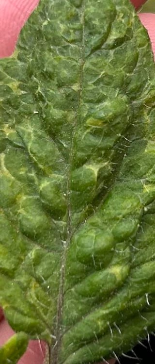 The bumps on the leaves are OK. Everything is verdant on this plant.