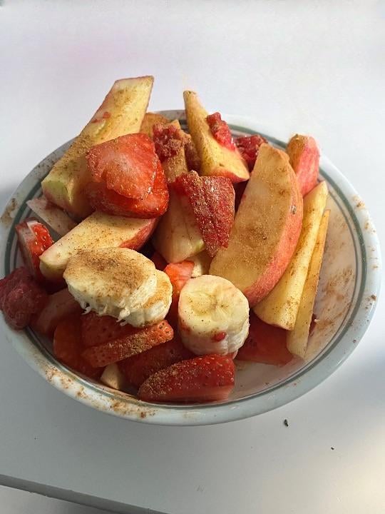 258calsapple 78 strawberries 36 rasberries 15 banana 126 honey 3 cinnamon 0 by Mobile-Branch-1275 2 Comments kombuchatherapy 5 months ago i try to have a bowl of fruit everyday, usually i break my fast with it. loooove some apples, bananas, and mandarins. h4ili3 5 months ago ughhh i love apples + bananas with cinnamon omg