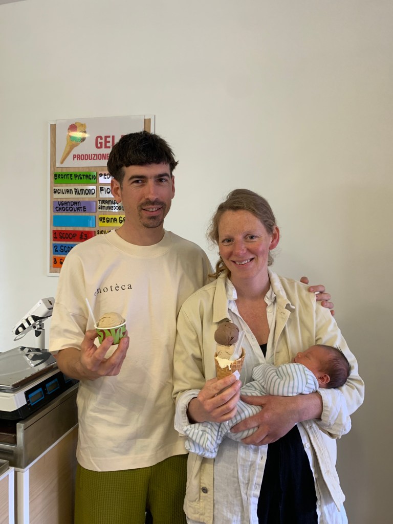“We’re husband and wife Marcello and Kate – and our newest arrival, one-week-old Mila!