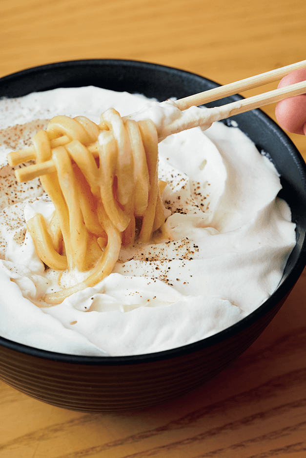 In Kanagawa, Udon Roji takes udon into unexpected territory by borrowing techniques from French gastronomy. Its signature dish, ‘White Curry Udon,’ looks more like a dessert at first glance. The whiteness comes from a potato emulsion whipped into an airy mousse using a classic French technique. The light, creamy foam gives way to the gentle sweetness of the tuber before revealing a curry broth of subtle spice and layered umami.