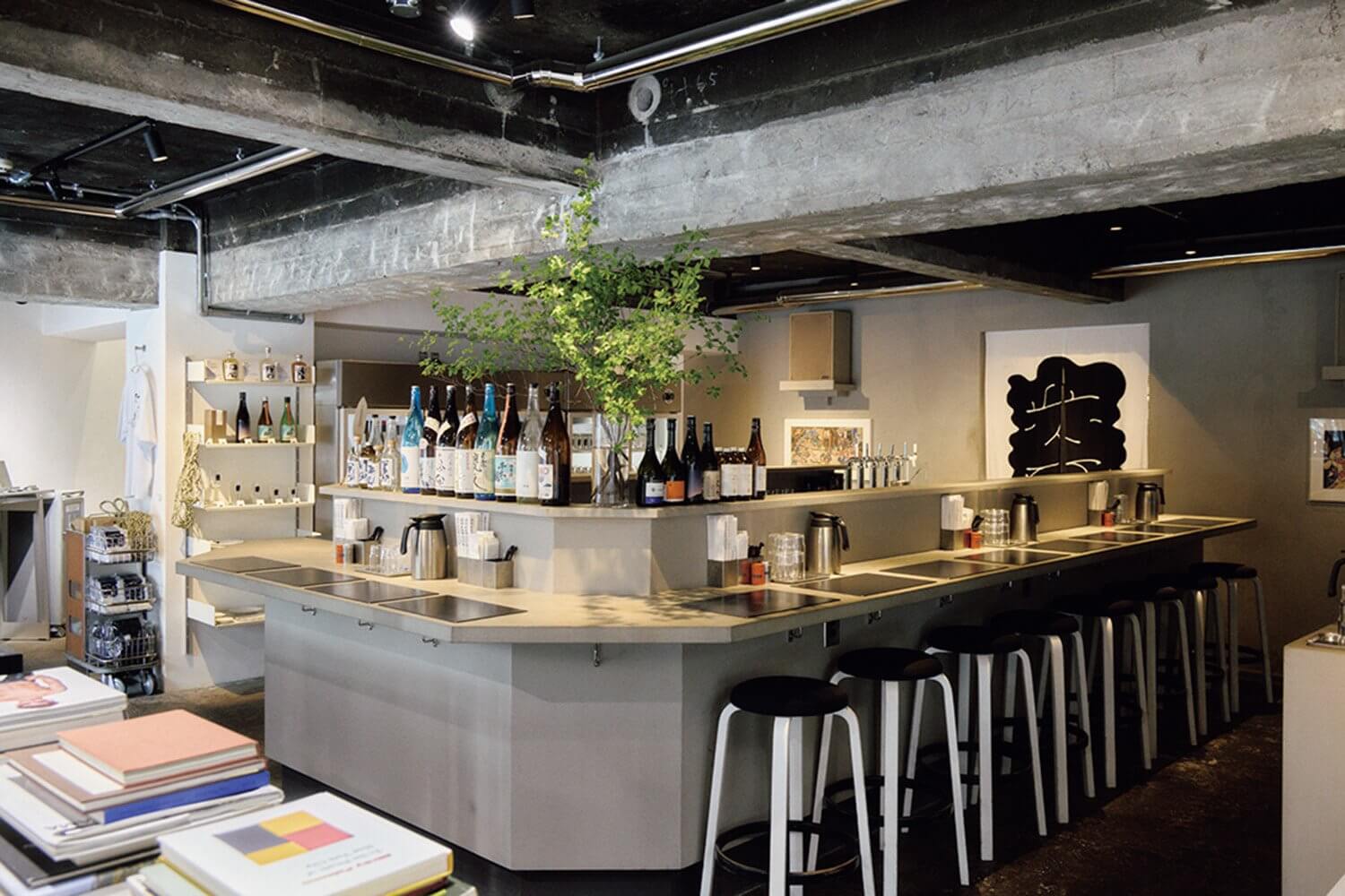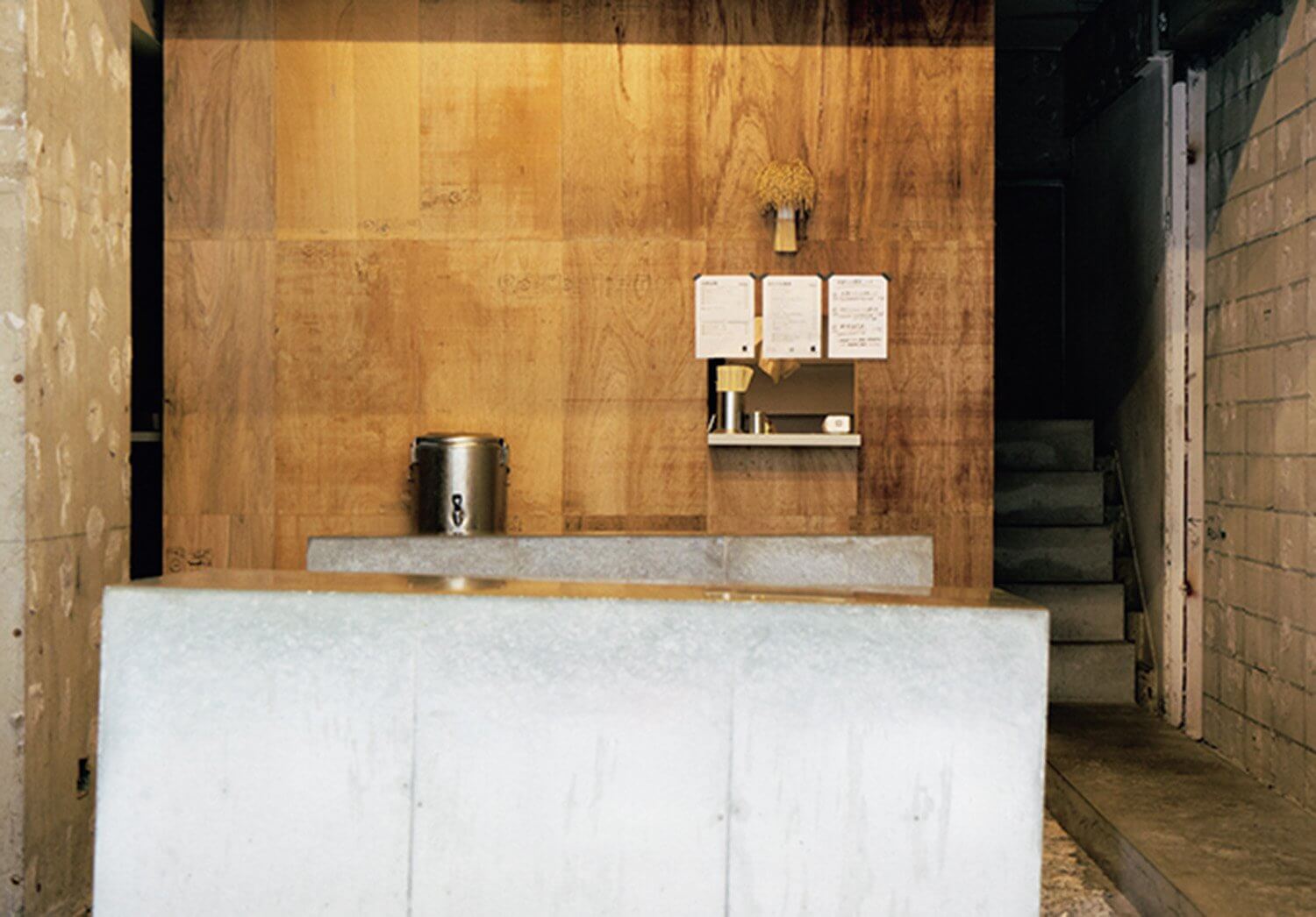 A raw interior by YUSUKE SEKI STUDIO, also behind the Kyoto flagship. Tables are intentionally set at a slight angle.