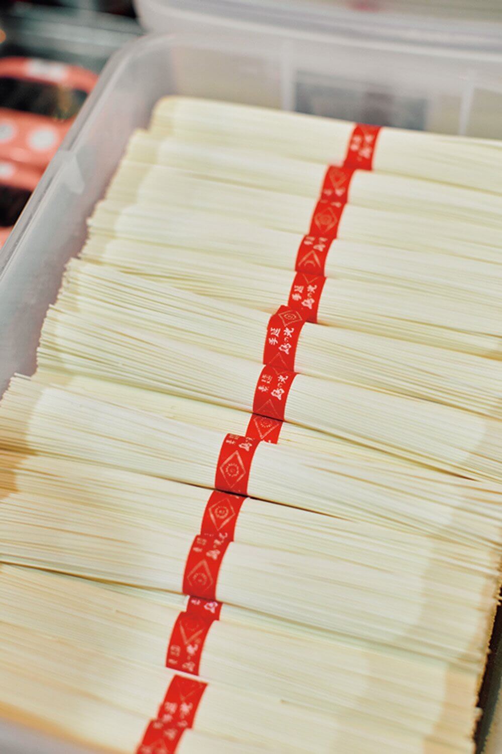 Shima no Hikari noodles come in three styles: red label (standard), black (made with Hokkaidō wheat), and gold (using Sanuki ‘udon’ wheat). Their firm texture is such that they can be enjoyed unadorned.