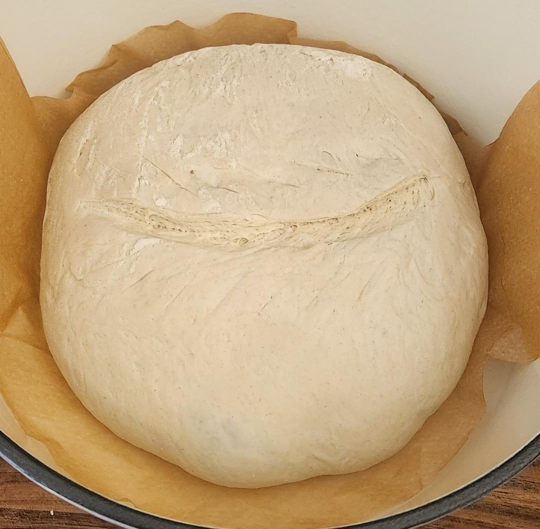 I did what I thought was a letter fold, popped her back into the bowl and then came back 30 mins later to do an actual letter fold and wrapped her up tightly (I'm still learning 😹)