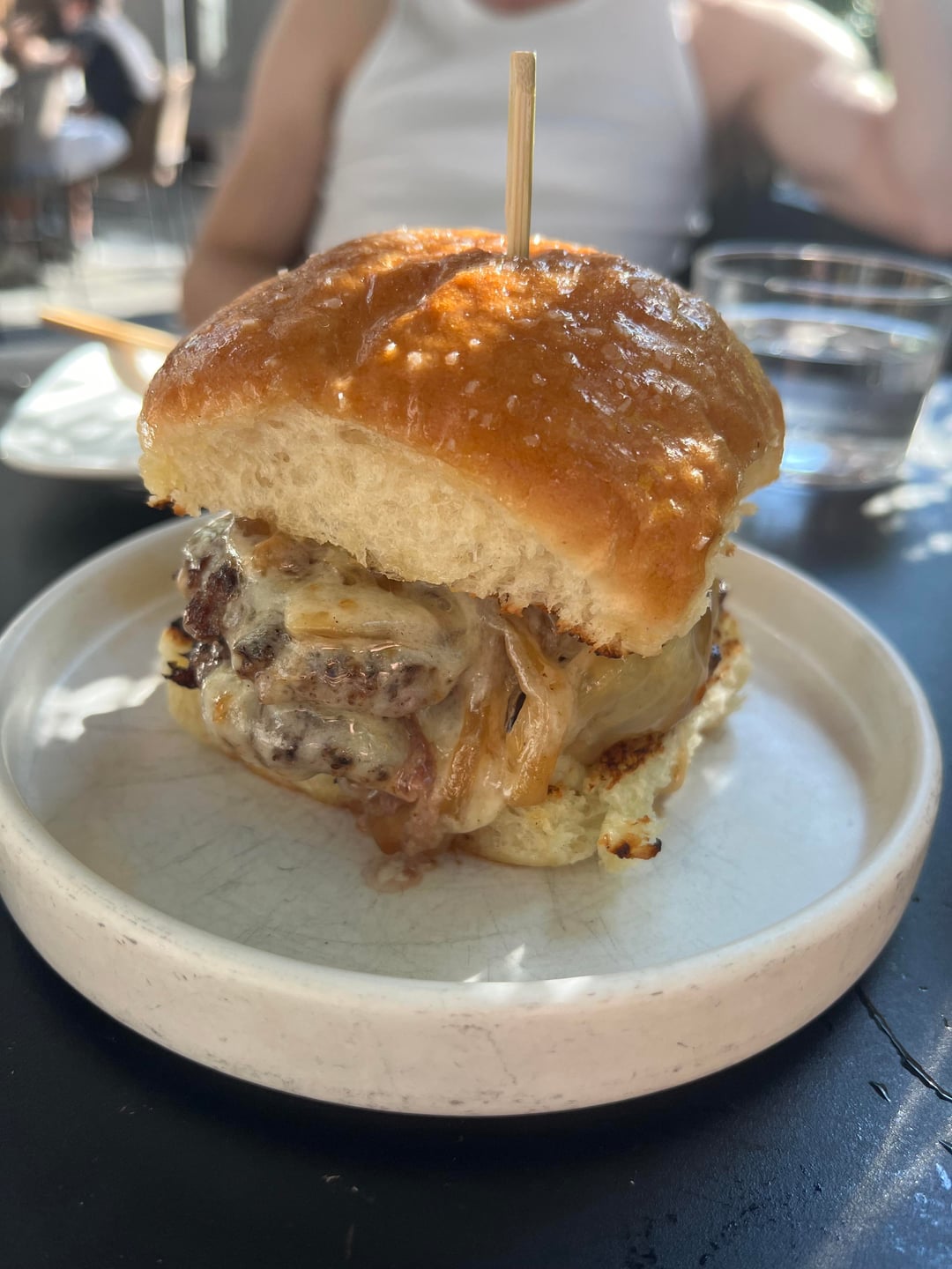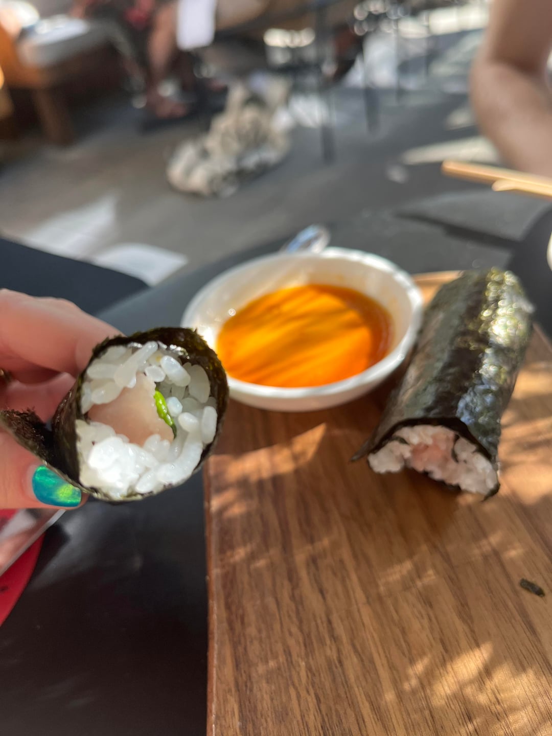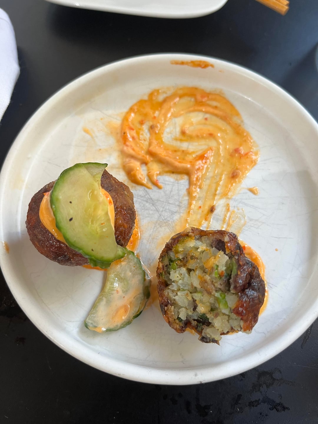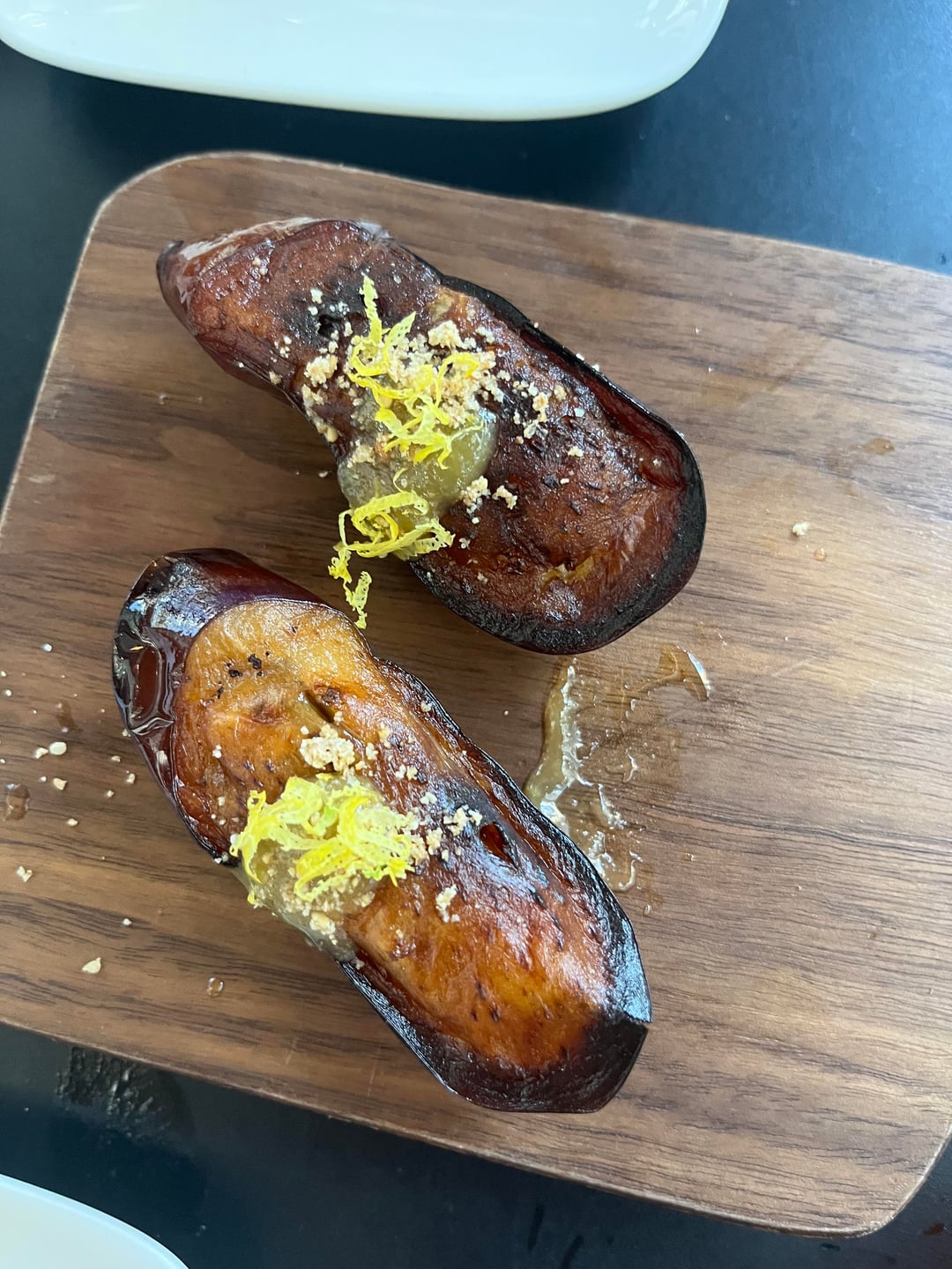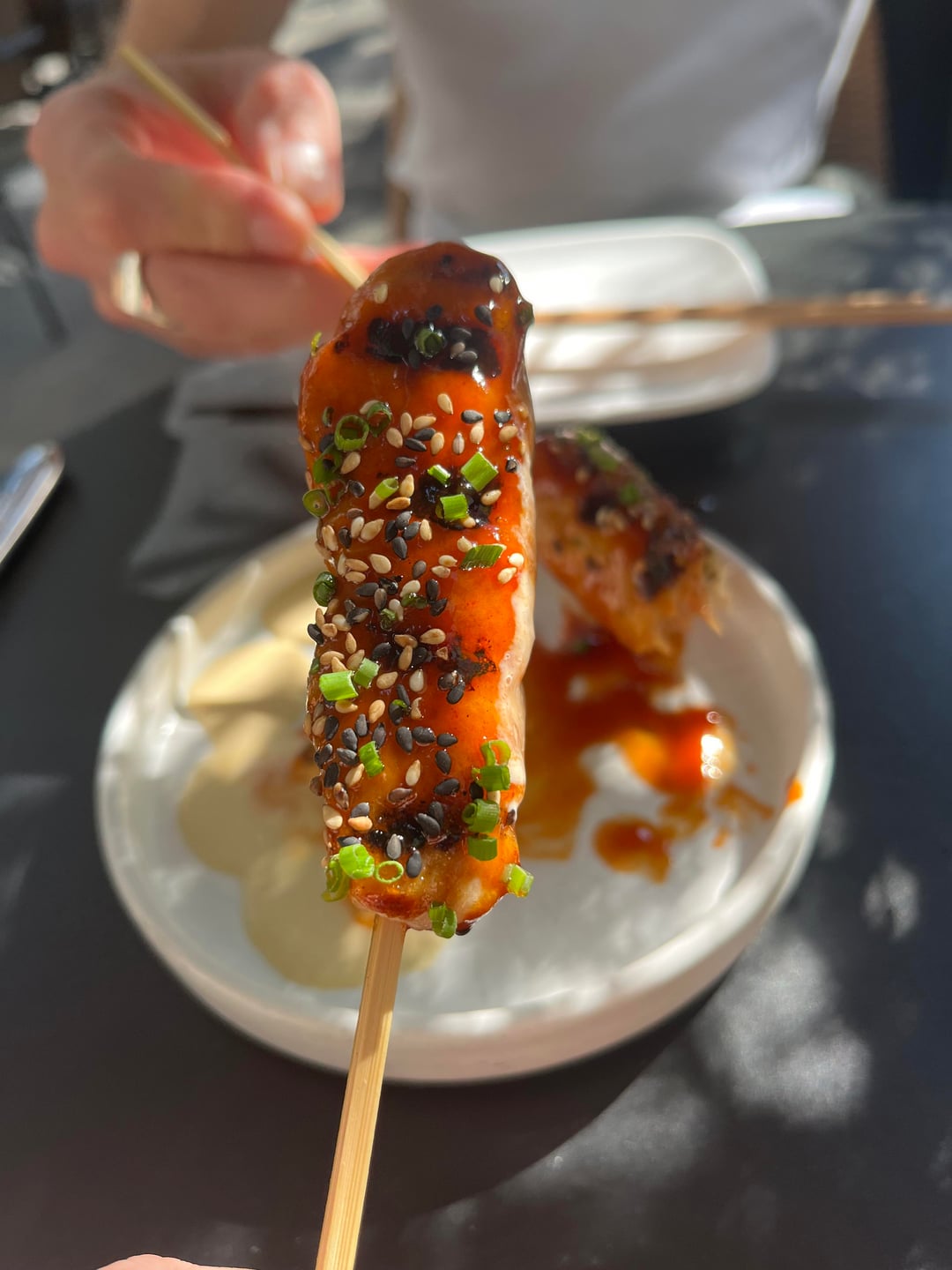 Crispy brussel sprouts, hiramasa (so good we ordered an extra round), hama chili, chicken tsukune skewers, hamachi temaki, ba burger, sake nigiri and bluefin tartare gunkan (not pictured, disappeared immediately), and pineapple popsicle – all delicious and such a great deal at $90 for two. We also got the eggplant nigiri (actually maybe my favorite! Miso 🤤) and a free birthday onigiri. Service was excellent as always and bā has the best ambiance of any local Uchi IMO, inside and out. Looking forward to going again!