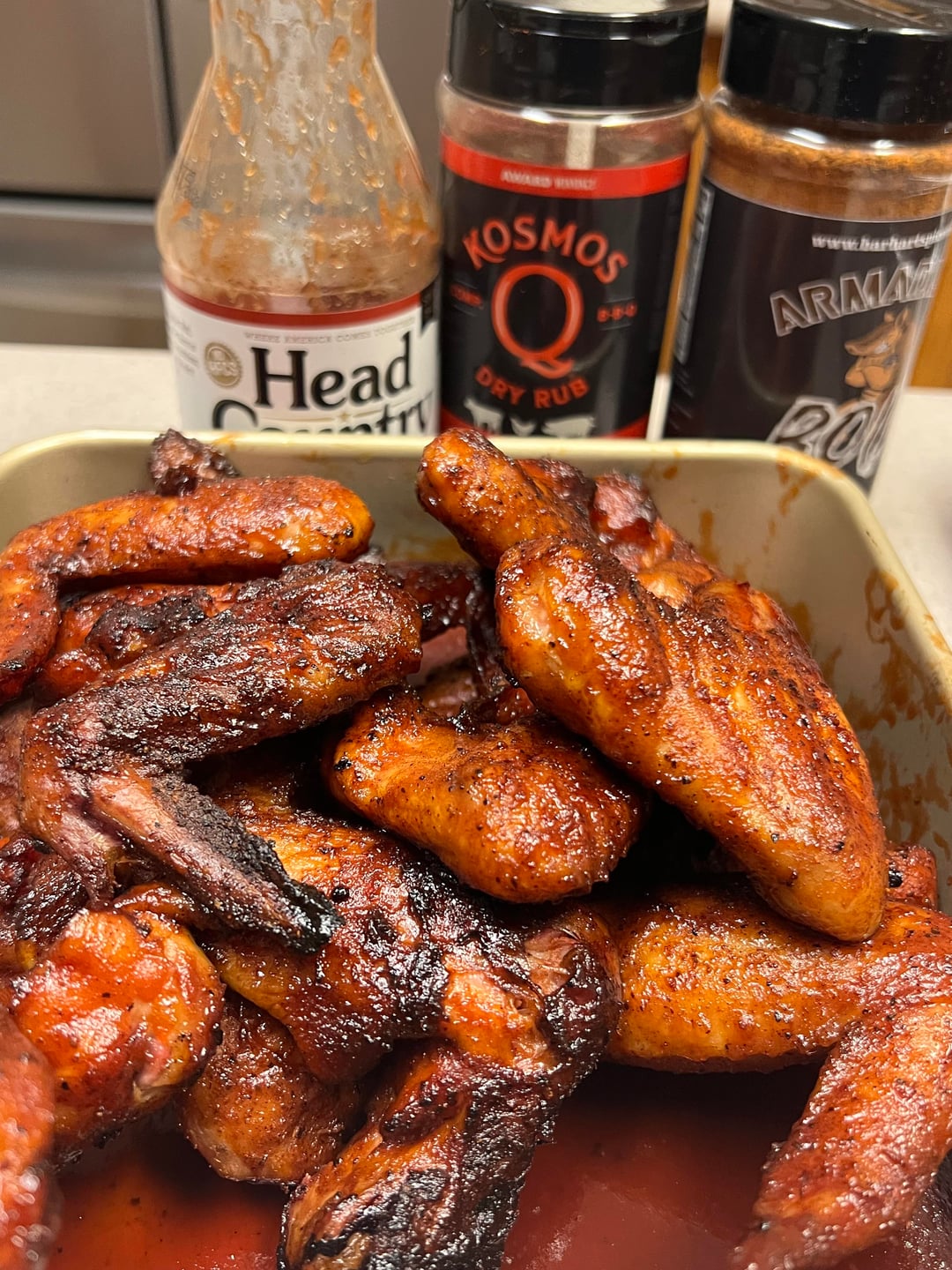 Wings and beefcake. Wings in the third picture look so wonderfully glazed, making me hungry.