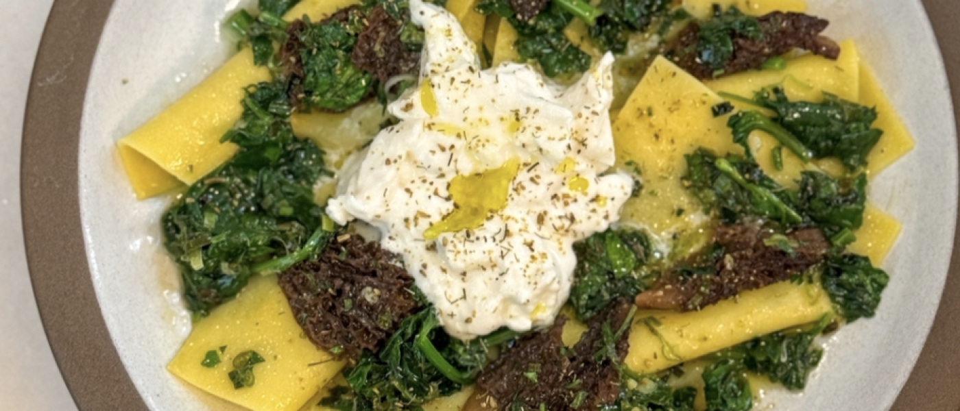 An upscale and buzzy Italian restaurant with an open kitchen and fireplace lounge, featuring freshly made pasta.
