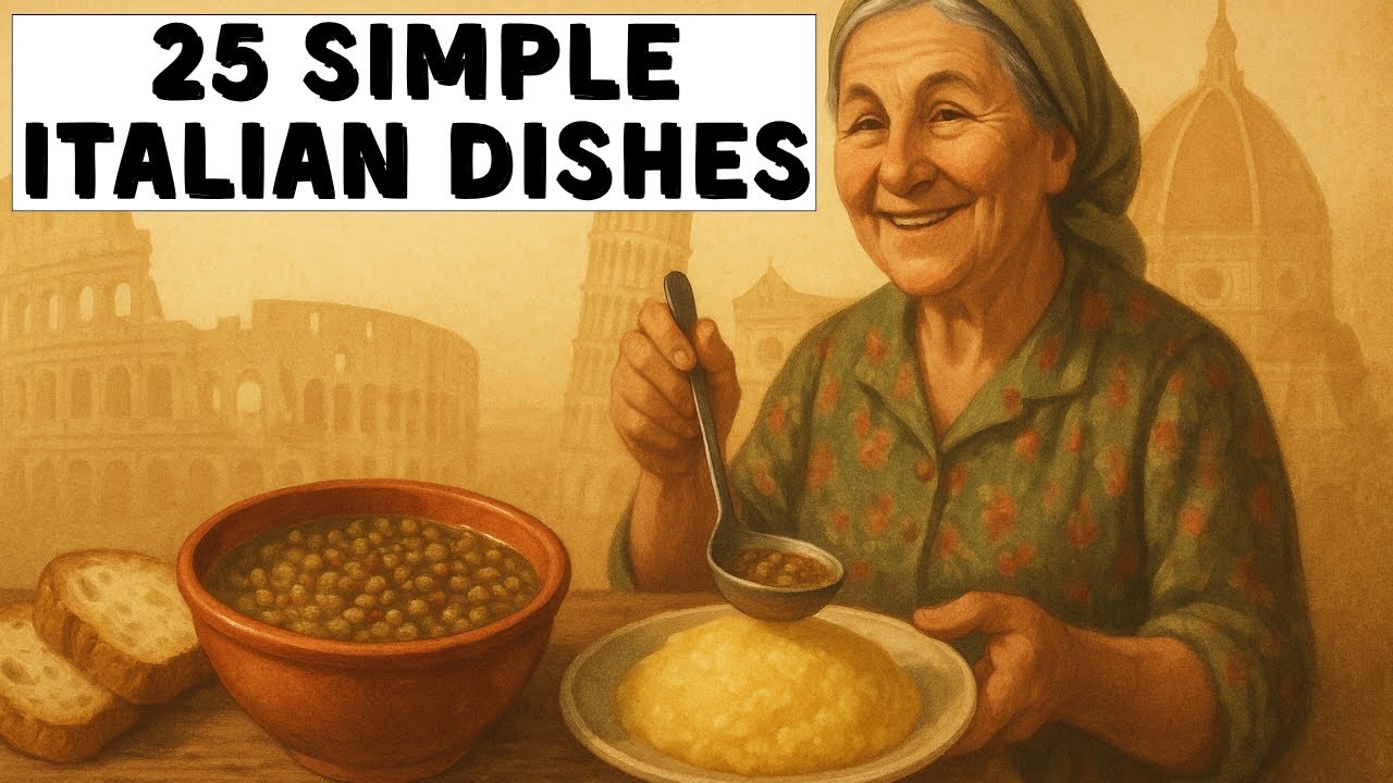 There was a time when hunger was met not with abundance but with creativity. When the simplest ingredients bread, olive oil, a few tomatoes from the garden became miracles on a plate. In rural Italy, familia’s deed to eat to impress. They ate to survive, to share, and to remember. Every dish carried a story, and every story carried love. Before we begin our journey through the 25 simple dishes that fed rural Italy, take a moment to subscribe to the Italy we remember. Here, every video brings you closer to the heart of an Italy that still lives in flavors, in laughter, and in memory. Join us, and together we’ll keep the taste of old Italy alive. Imagine waking up in a stone farmhouse somewhere in the hills of Umbria or Calabria. The air is cool. The morning mist still clings to the fields, and the smell of wood smoke drifts from a nearby chimney. The day begins not with haste, but with quiet purpose. Nona moves slowly in the kitchen, her hands worn yet gentle, kneading dough without scales. Without recipes, only memory guiding her. She’s preparing pain rafer, yesterday’s bread reborn for today’s meal. Nothing is wasted. And yet everything tastes rich. That was the art of rural Italy to transform poverty into abundance through patience and love. Bread, olive oil, and salt. The holy trinity of the countryside. They were never just food. They were symbols of dignity. In every region, families learned to turn scarcity into flavor. In the norale, bread became panata, softened in broth and flavored with herbs. In the south, it became panzanella, soaked with tomatoes and basil. The taste of life was simple and it was enough. When meat was rare, Italians turned to the earth. Lentils, beans, chickpeas. These were the treasures of the poor. A pot of Minestra delegum simmered for hours, filling the house with an aroma that promised warmth even before the first spoonful. The meal was shared from one bowl, everyone dipping their bread, each bite connecting generations. These were not just dishes. They were traditions woven into the rhythm of life itself. On Sundays, families gathered around the table for pastafata in kasab. In rural kitchens, flour covered every surface and the sound of rolling pins echoed like music. Children played near the table as known as shaped taglatell or a by hand. Each piece was slightly different, imperfect, human, alive. It wasn’t about presentation. It was about participation. The act of cooking together was the meal before the meal. The true feast of togetherness. And then there was penta. In the cold valleys of the north, it was the canvas of life. Yellow, steaming, spread on wooden boards to be shared by all. Sometimes topped with mushrooms, sometimes with a drizzle of cheese, but often just alone, humble, filling, and comforting. To eat palenta was to taste endurance, the quiet pride of people who worked the land and took only what they needed. In the south, frittata dipole or frittata de zucchini brought joy to the table. Eggs gathered from the yard. Onions browned in olive oil. That was dinner. Cheap, fast, nourishing. Each bite whispered gratitude for what the earth had given that day. The fragrance lingered long after the plates were empty. There was also aquasale, water, oil, bread, and tomato. The essence of peasant cuisine, born from necessity, yet immortal in simplicity. Farmers carried it in cloth bundles to the fields where they ate under olive trees during the harvest. Bread soaked in cool water to soften it, then kissed with oil, salt, and tomato. That was enough to feed the body and the soul. Milk and eggs turned into custards. Simple sweets that ended the week with comfort. Late doul sambel povos pan such slices of bread sprinkled with sugar and a few drops of milk. Were the deserts of childhoods now long gone. They cost nothing but tasted like everything. Each dish told a story of resilience. A pot of supatic cababolonero in Tuskanyany earthy and rich kept families warm in winter. Patet alono roasted with rosemary made ordinary days special. Even a single tomato sliced with salt and oil was a small celebration of survival. The rural table was never extravagant. It was sacred. In the evenings when the day’s work was done, people gathered not around televisions but around bread. Someone might slice cheese. Another poor wine laughed at us candis flickered and the sound of spoon scraping terra cotta bowls filled the air. There was gratitude for the harvest, for health, for simply being together. Those were the nights that shaped the soul of Italy. We often think of poverty as emptiness. But in those kitchens there was fullness beyond measure. Full hearts, full tables, full lives. Food was not about luxury. It was about meaning. A handful of flour, a drizzle of oil, a pinch of salt, and love did the rest. That love still lives in the memory of every Italian grandmother in every village where the smell of bread still rises from woodf fired ovens. Today, when we look at glossy restaurants and gourmet menus, it’s easy to forget where flavor truly comes from. It’s not from perfection. It’s from patience. It’s from hands that learned by doing, not reading. From people who believed that a shared meal could heal even the hardest day. That is the secret. Italy gave the world not recipes but reverence. Close your eyes again and picture this. An outdoor table under vines heavy with grapes, a pot of beans steaming in the center, slices of bread laid around it, children running, dogs barking, someone pouring wine from a chipped jug. The sun sets slowly, painting everything in gold. You can smell garlic and tomato in the air. You can hear laughter mixed with the crackle of a fire. That’s not nostalgia, that’s identity. We all remember those meals even if we never live them because they speak to something universal. The hunger for connection, for simplicity, for home. In a world that moves too fast, these memories remind us to slow down, to savor