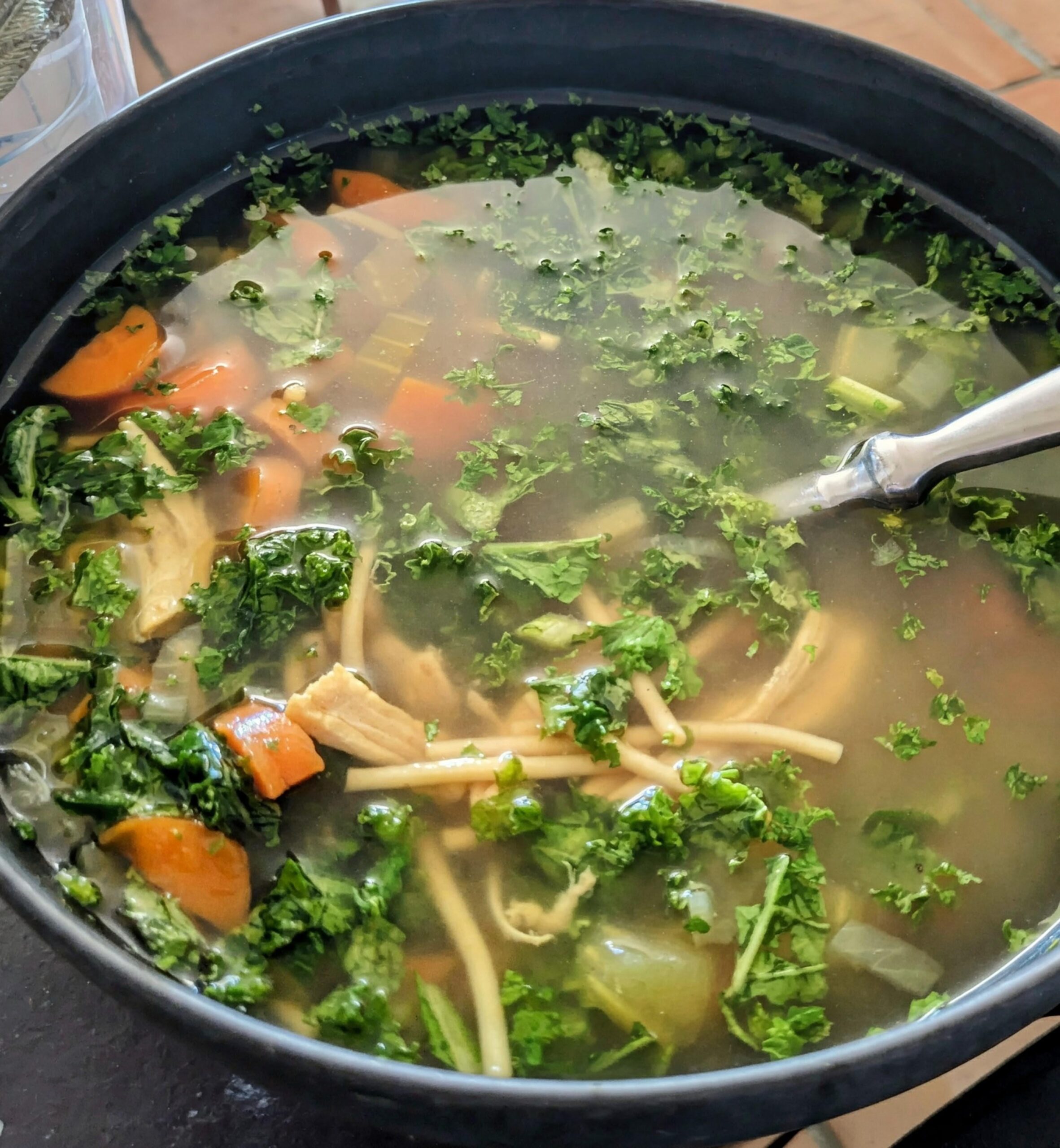 Made this for mom who is staying with me while recuperating from gallbladder surgery. Added kale to my bowl since Mom doesn't like it. I think all she can handle today will be the broth since she just had the surgery yesterday and doesn't seem up to eating everything in the soup yet.