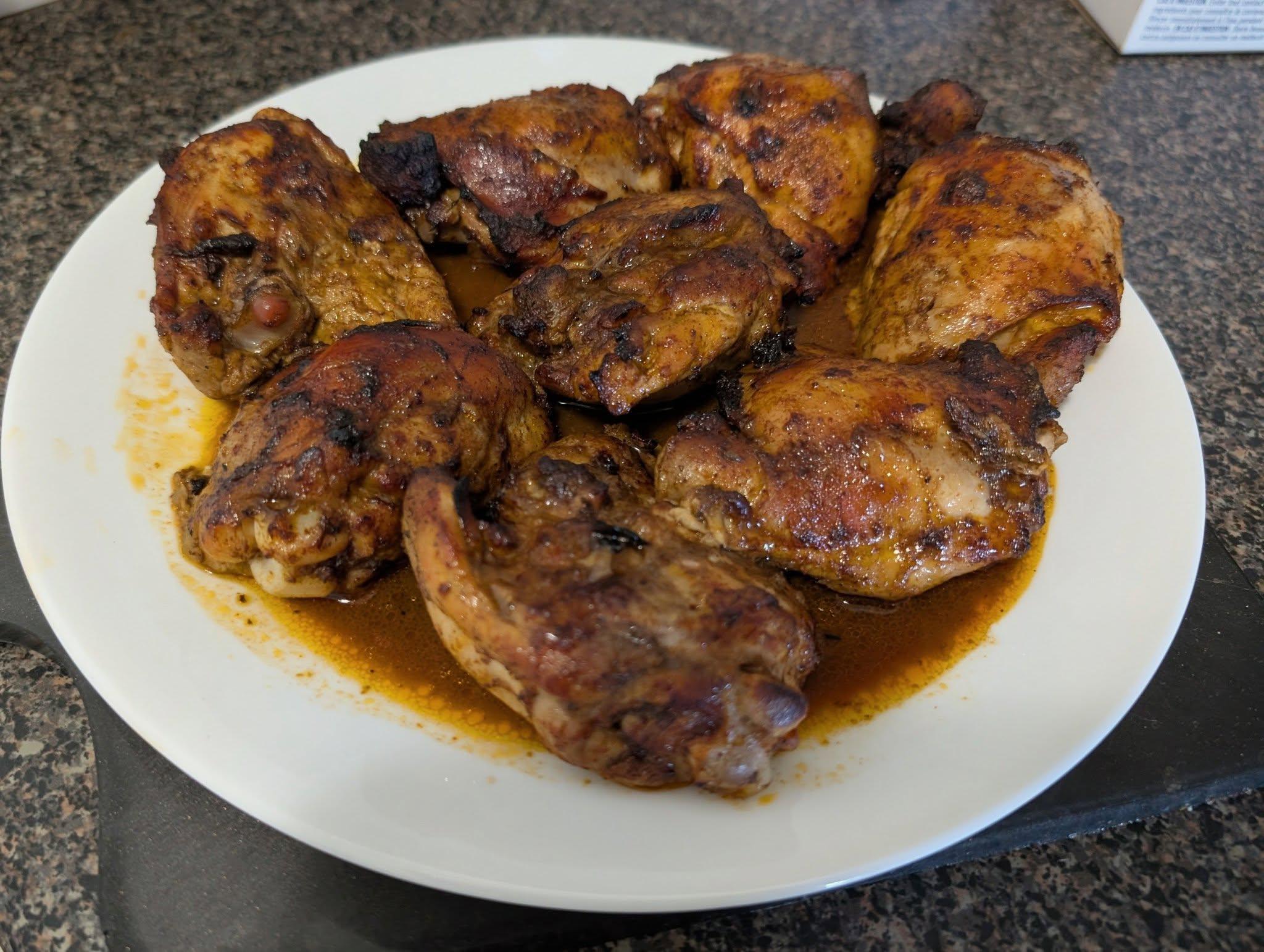 Chicken thighs in a tandoori marinade cooling off in their own juices. by styckx 1 Comment jackdho 2 days ago Would you share the recipe for the marinade?