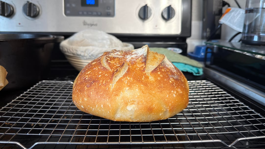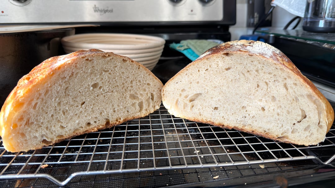Hi, I am still pretty new to sourdough and trying to figure it out! Any suggestions? Thanks! by SecureManufacturer32 4 Comments AutoModerator 2 months ago **Hello SecureManufacturer32,**Thank you for posting. **[Here is the posting prompt](https://imgur.com/a/De6AKiQ)** if you need to read it again. **[RULES LINK](https://www.reddit.com/r/Sourdough/wiki/sourdoughrules/)** :-). This comment appears on **all posts**.**[Modmail us :-)](https://www.reddit.com/message/compose?to=/r/Sourdough)** with questions. # **[READING CRUMB GUIDE ](https://www.reddit.com/r/Sourdough/wiki/reading_crumb/)** # [Wiki index](https://www.reddit.com/r/Sourdough/wiki/index/), & # [FAQ Beginner starter guide](https://www.reddit.com/r/Sourdough/s/gnqFg7osBO)*I am a bot, and this action was performed automatically. Please [contact the moderators of this subreddit](/message/compose/?to=/r/Sourdough) if you have any questions or concerns.* lynxz 2 months ago Looks good! Did it taste decent?I think its a bit underproved. Fuzzy_Welcome8348 2 months ago It looks pretty good! How’s the texture? PinkedOff 2 months ago Looks lovely! Good job.
