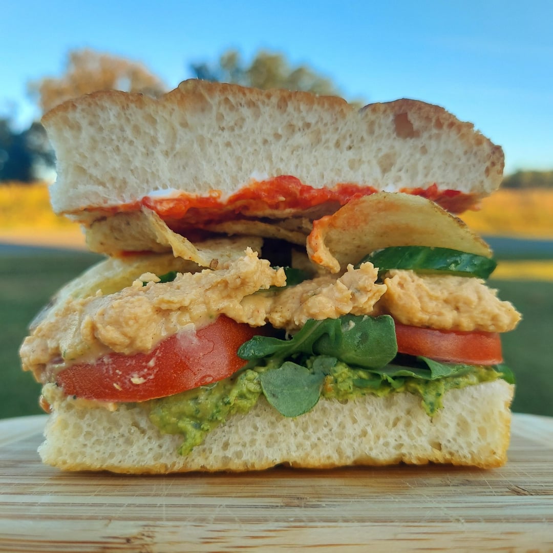 1-2) Traditional and jalapeno-cilantro hummus with tomatoes, cukes, arugula, kettle chips and spicy paprika paste; 3-4) Spicy Italian with jalapeno-cilantro hummus; 5) Beyond sausage with jalapeno-cilantro hummus by slh2c 3 Comments catsarecute44 1 month ago That looks bomb lovetofart420 1 month ago Ur the king of sandwiches SnowflakesFlame 1 month ago The jalapeños-cilantro sauce looks to due for !