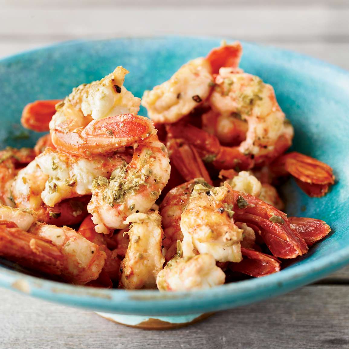 The sauce for this shrimp is a simple version of Italy’s salmoriglio, typically made with lemon and herbs in a mortar. The sauce is also delicious spooned over grilled swordfish or any other meaty fish.