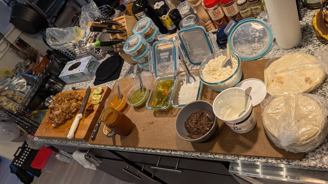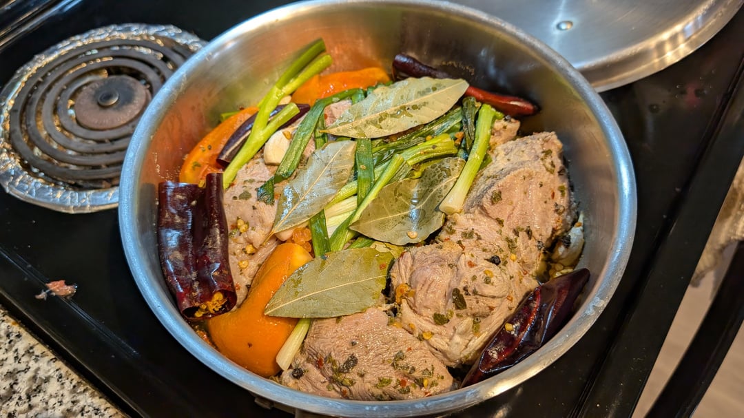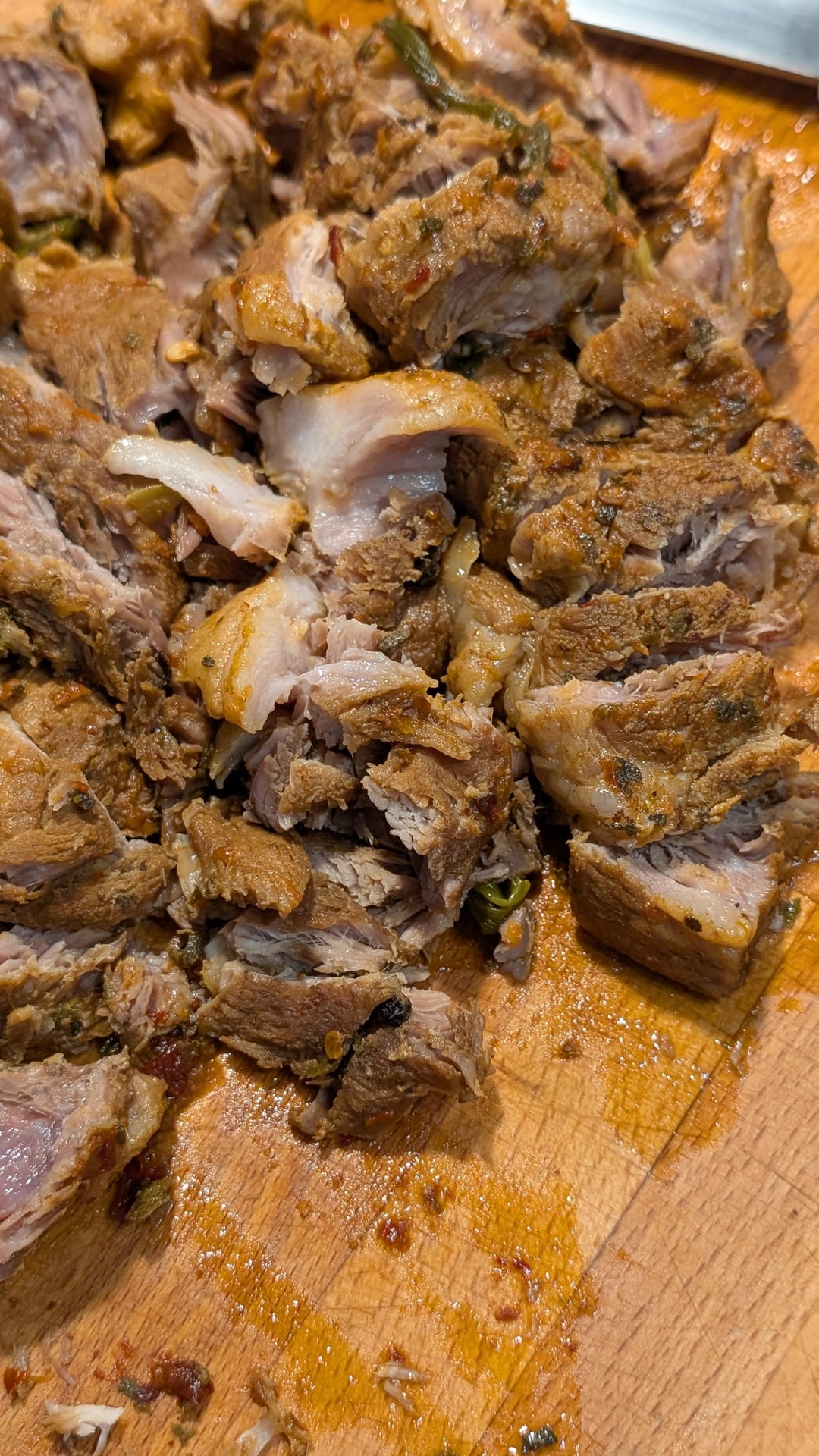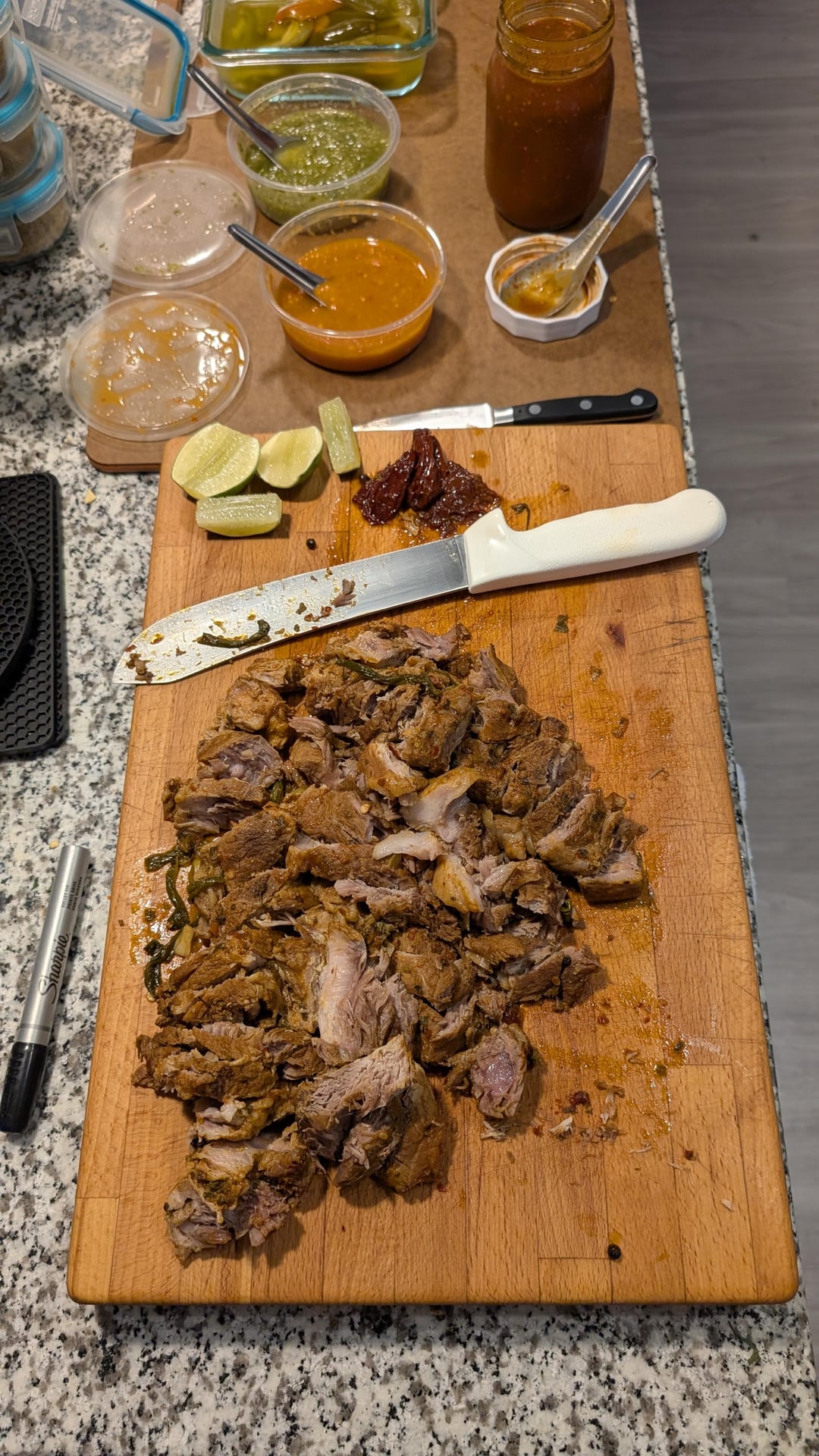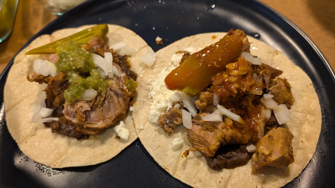Carnitas with fresh corn tortillas from the local spot and homemade red chili sauce by [deleted] Dining and Cooking
