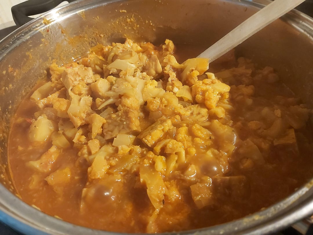 This is what you need for the base recipe and it's good like that but the dish lends itself to add whatever you like. Today I added tempeh and chillipeper. Examples of things I added in the past were canned chickpeas and leftover boiled cabbage from the freezer.