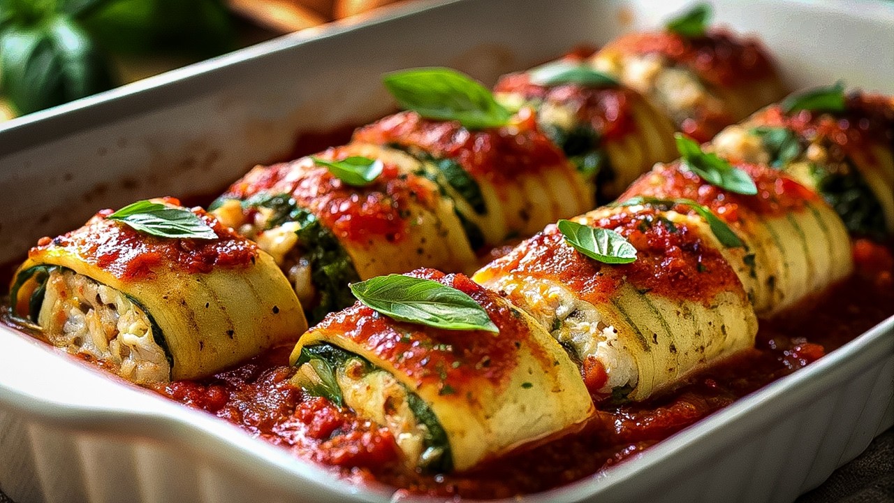 Stuffed zucchini rolls in tomato sauce! If you have zucchini, you need to make this recipe!