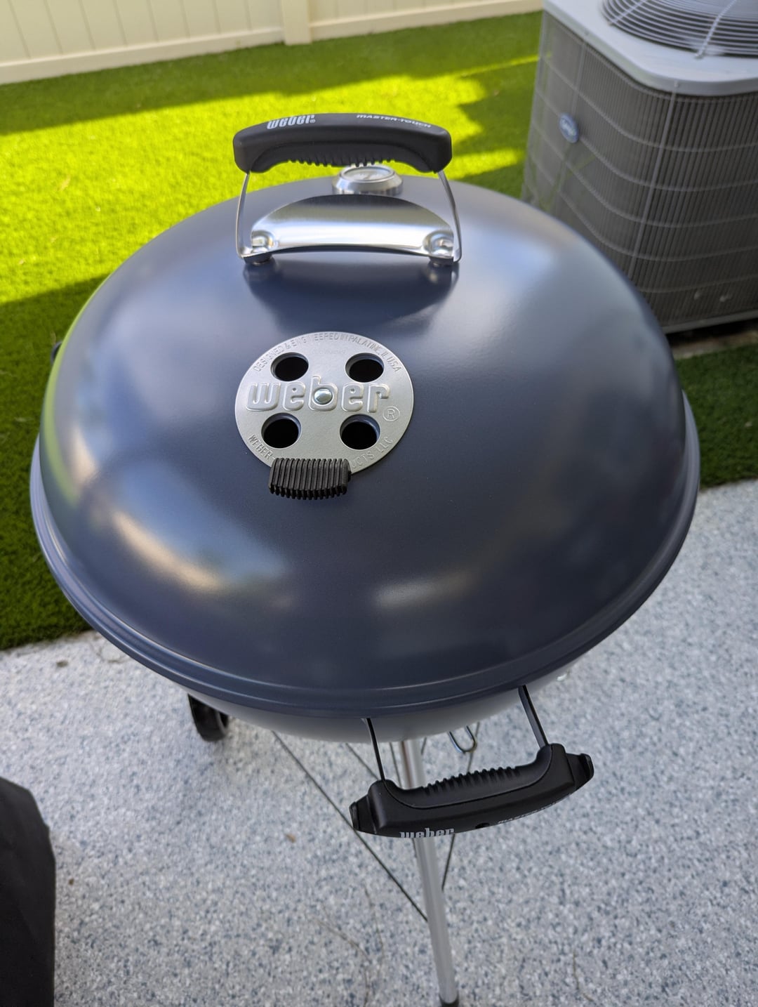 Pictures in reverse order, with a bonus shot of my gorgeous slate blue kettle fresh out of the box. I love this grill so much that my Blackstone, allclads and cast irons are all feeling neglected!