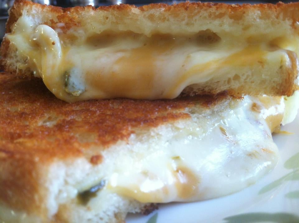 Pane Casereccio, Pepperjack, Smoked Cheddar & American. Pan grilled in clarified butter.