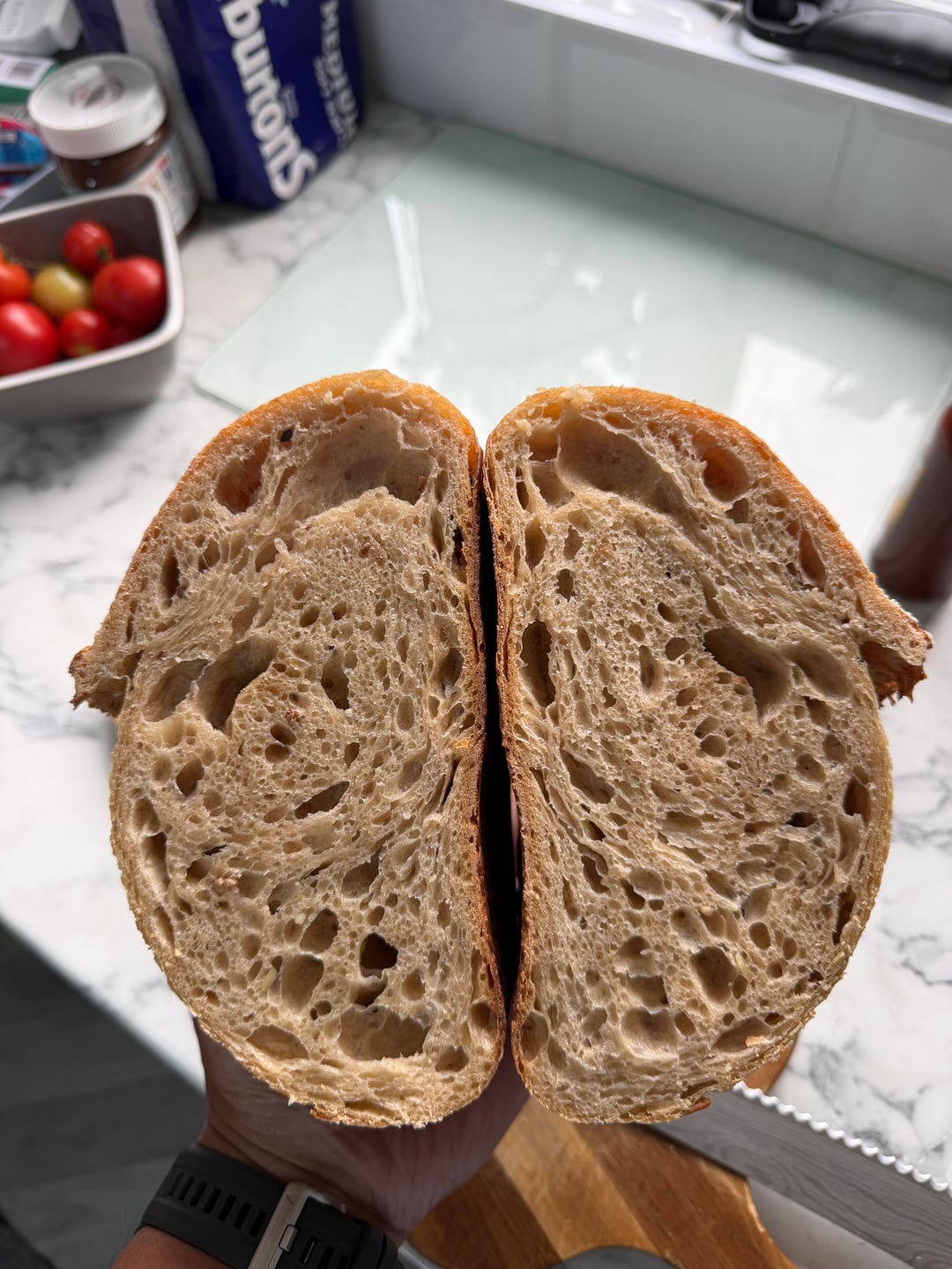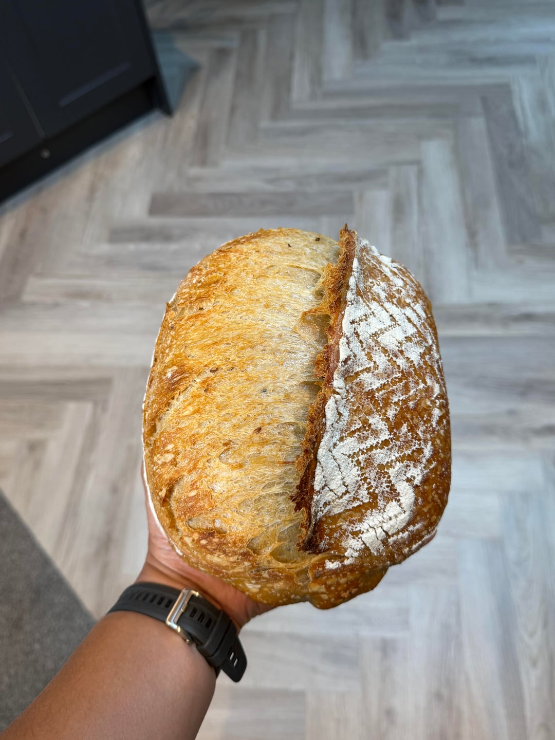 Hello that’s stunning! My practice is similar to yours: feeding it weekly, timing it 1 day prior to baking. And then the recipe as well: 60% hydration and 150g starter (mine is actually levain but because of the 50g discard + 50g water + 50g flour so it becomes 150g total), and 9-10 g of salt. I autolyse first for 45-60mins.