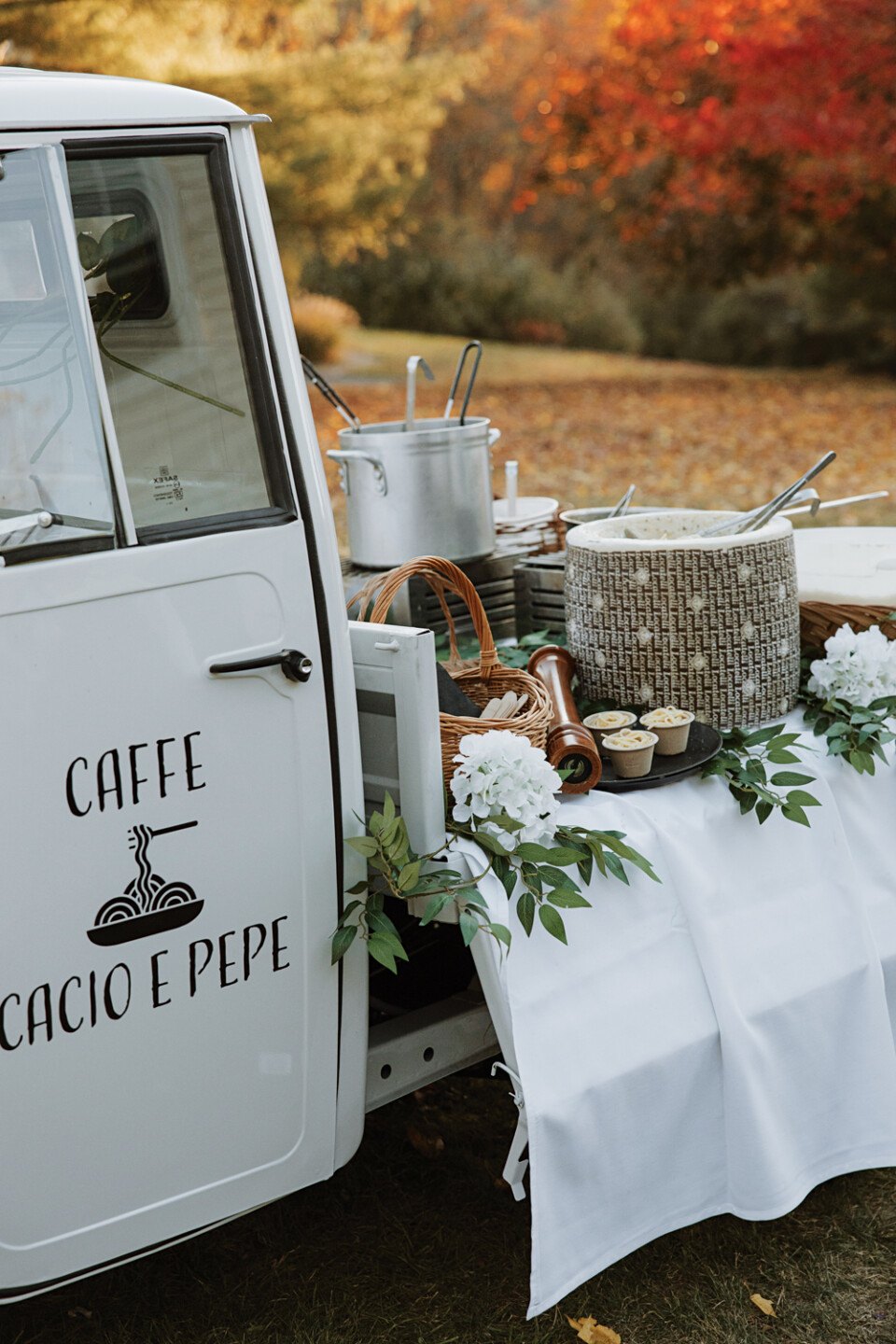 And consider Albertino’s Caffe Cacio e Pepe food truck for your cocktail hour. They’ll roll into your celebration in an authentic Italian Piaggio Ape and serve guests pasta out of a giant wheel of Locatelli Pecorino Romano. (They also just opened a cafe in Haddon Township!)