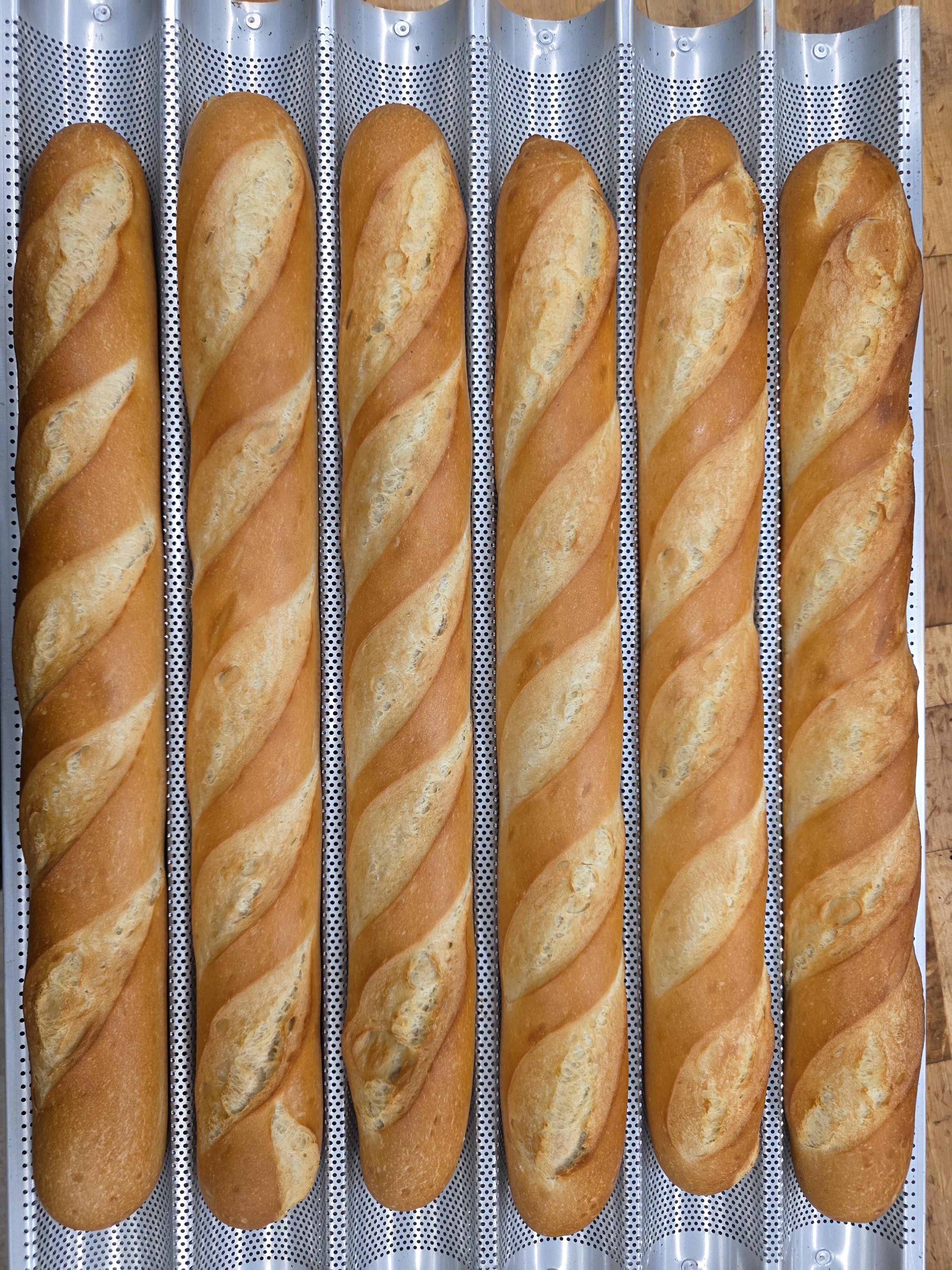 Looks a bit like French bread baguettes rather than traditional baguette, but the consistency of shape and scoring is great!
