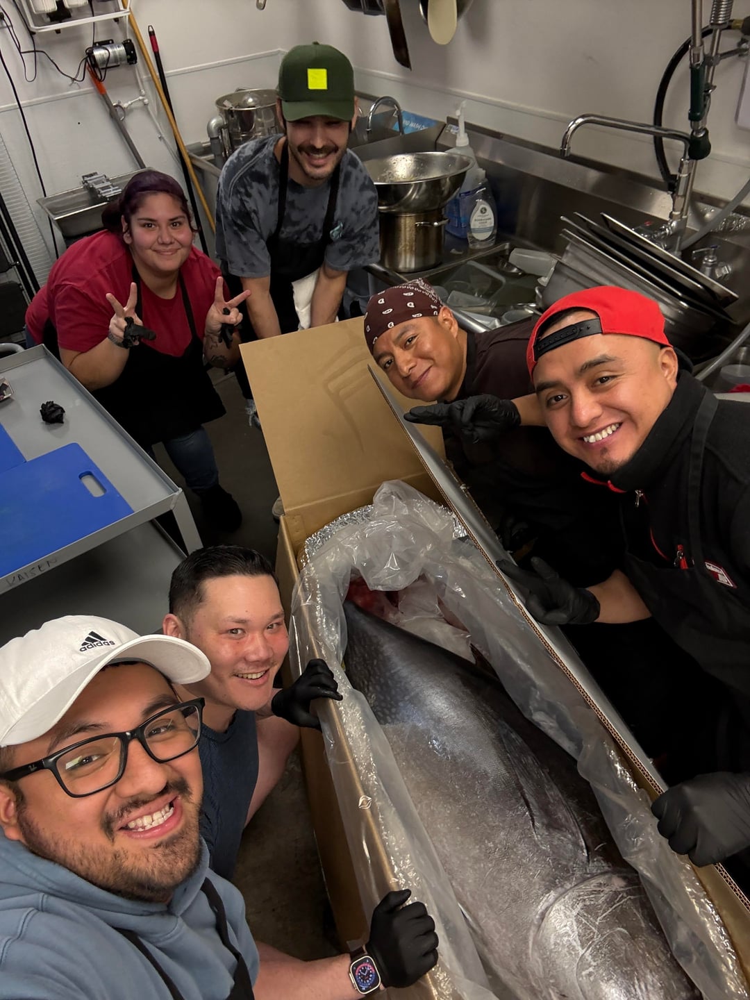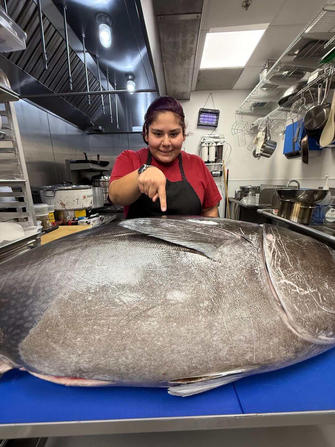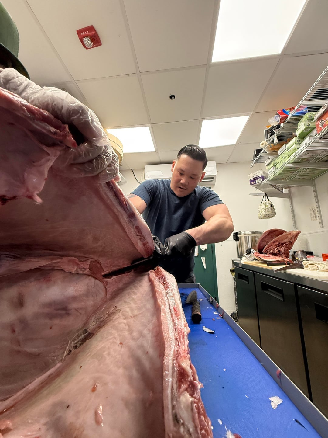 My 197sqft kitchen is now selling enough bluefin to where I was able to order a whole bluefin for 13.95/lb instead of buying loins. It was a fun time for my chefs and I to break this down for the weekend.