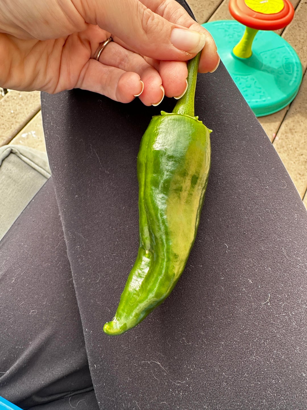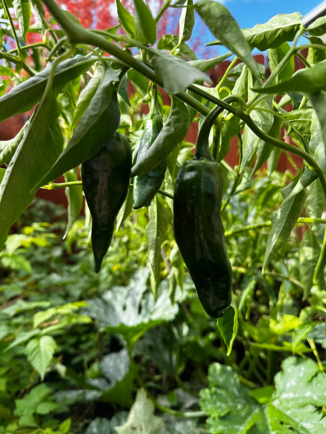 These were labeled as poblano peppers, but they don’t have the usual heart shape or the more blocky structure. It is similar to an Anaheim pepper, but much darker.