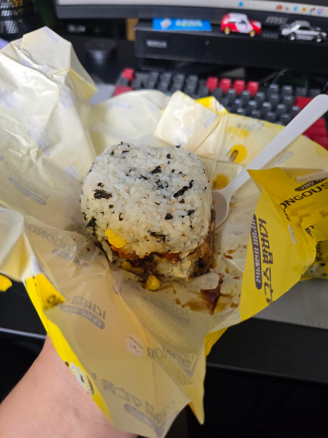 A simple meal that teenagers usually buy. The name is Burger, but it is usually scooped up with a stick.I don't think it's much different from cupbapI ordered chicken mayo and jeyuk by Correct-Money7395 Dining and Cooking
